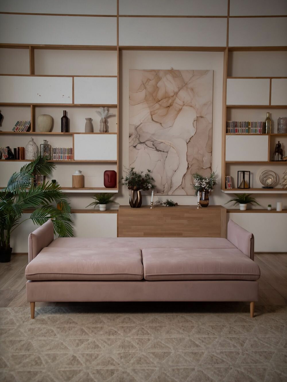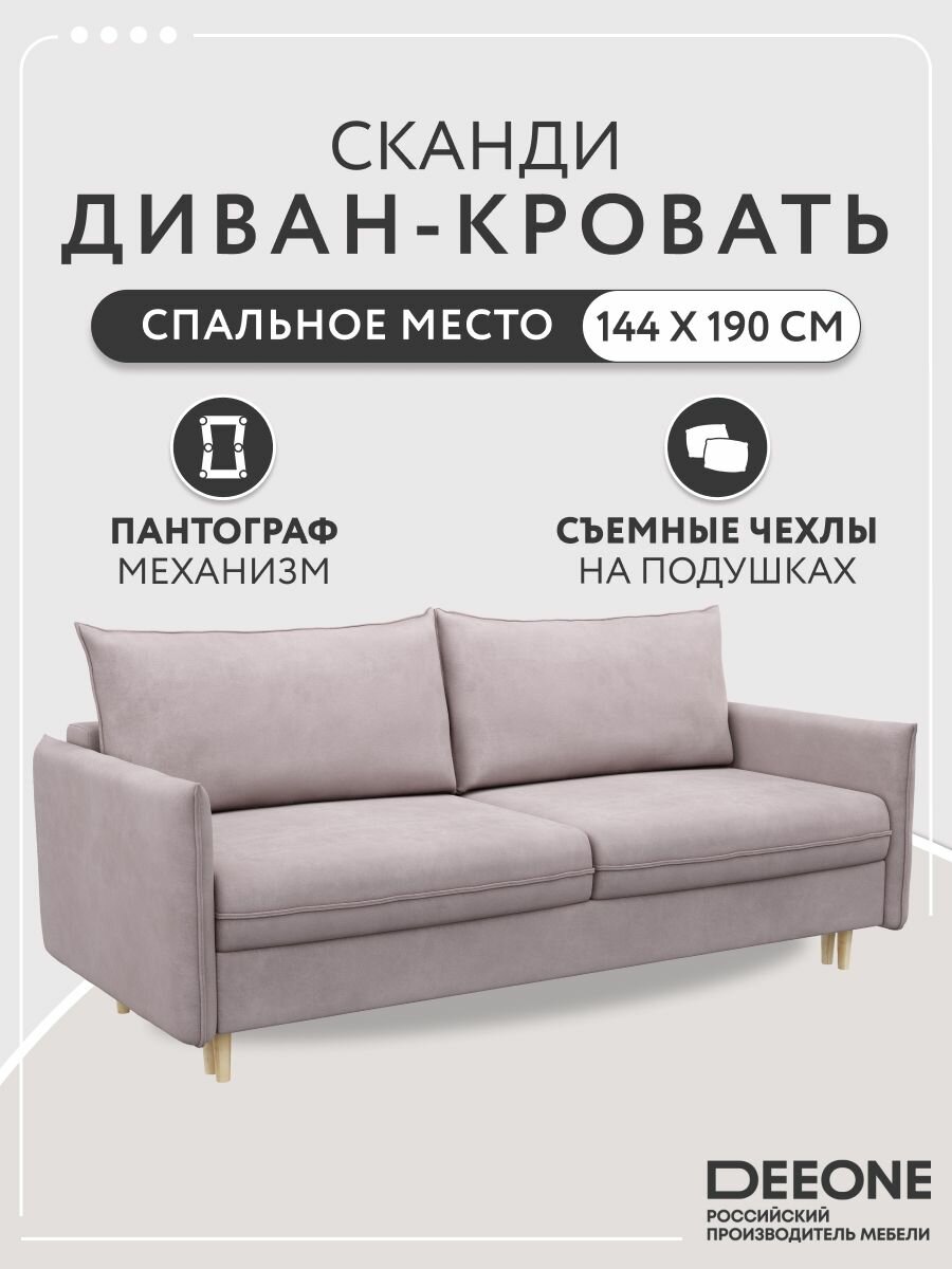 СохранитьДиван-кровать раскладной прямой на ножках Сканди в гостиную, пантограф, двуспальный, велюр, розовый, 212х96х90 интересное: