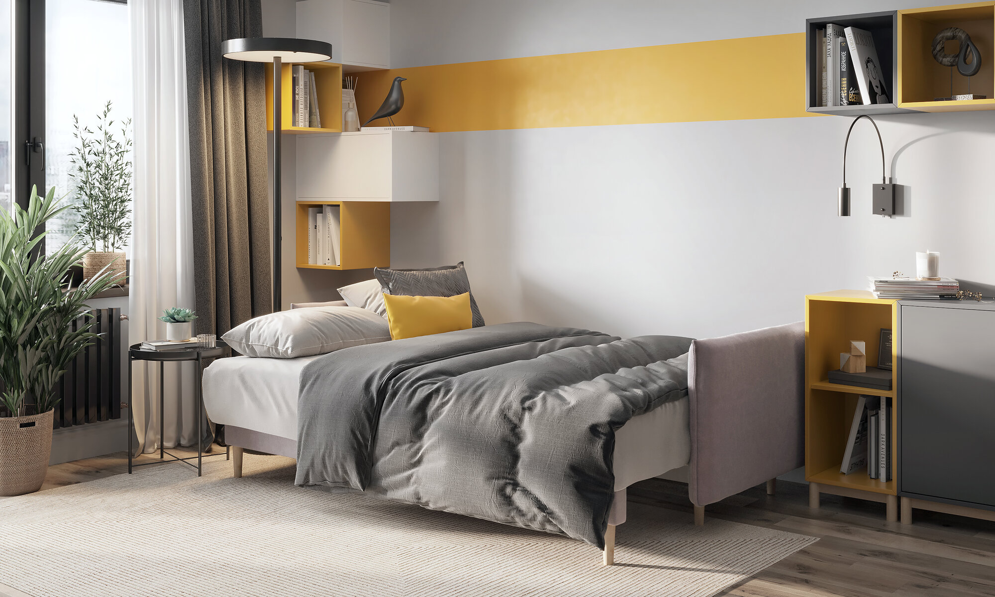 Диван-кровать на пружинном блоке Поль, прямой, 122*80*85, спальное 100*196, велюр олива, Велутто 69