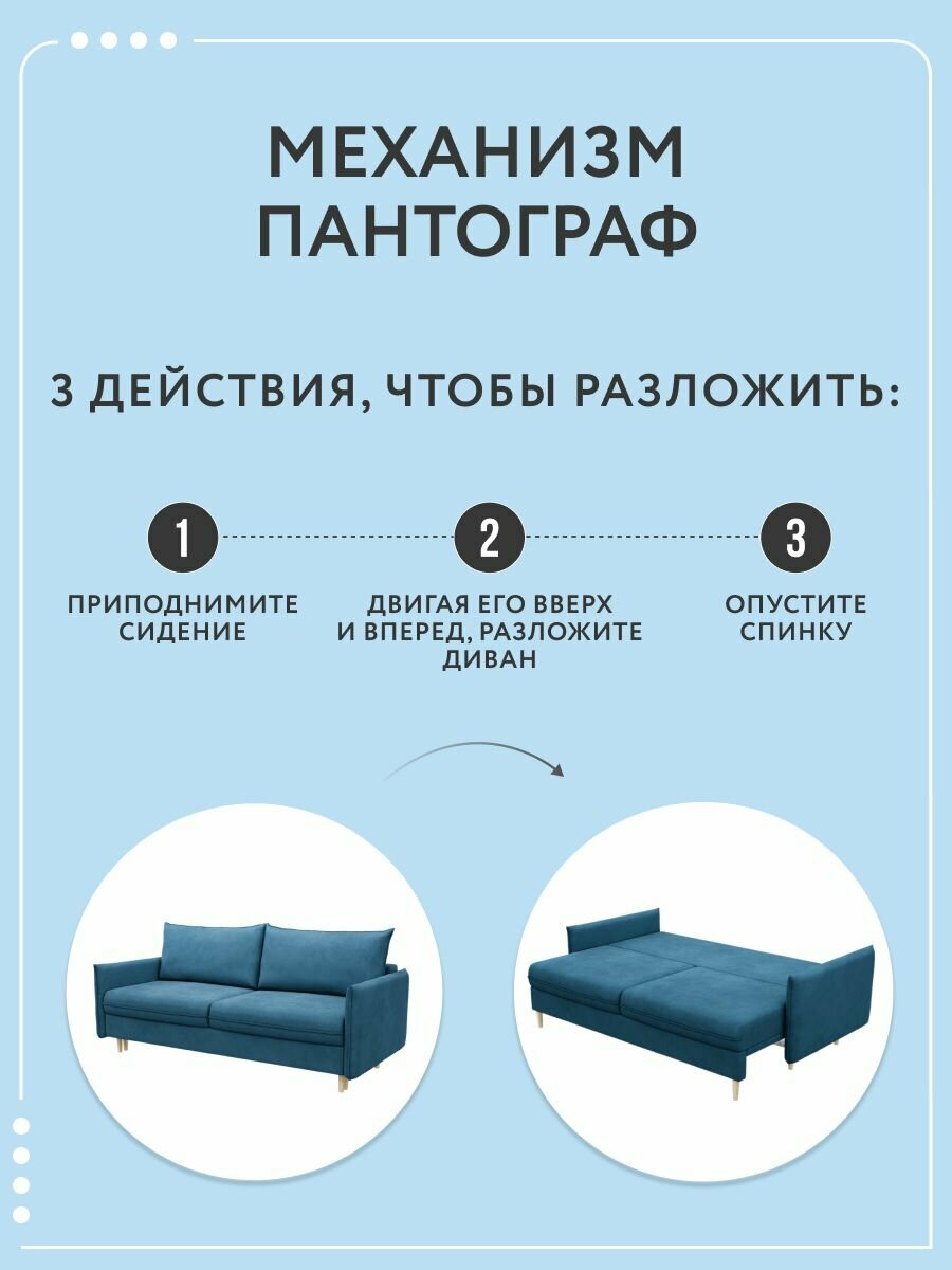 СохранитьДиван-кровать раскладной прямой на ножках Сканди в гостиную, пантограф, двуспальный, велюр, синий, 212х96х90 интересное: