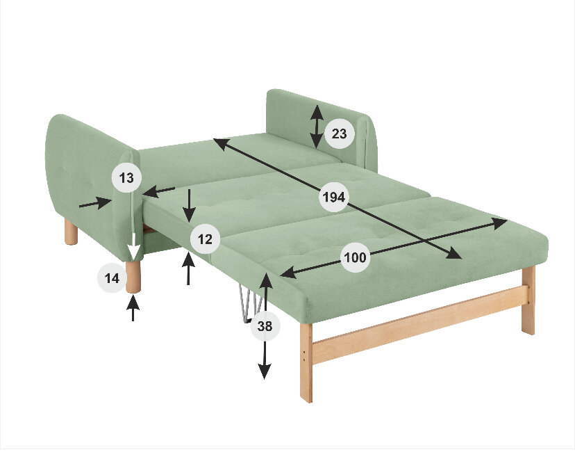 Диван-кровать Аспен , 128*80*81, спальное 100*194, велюр зеленый, Велутто 33