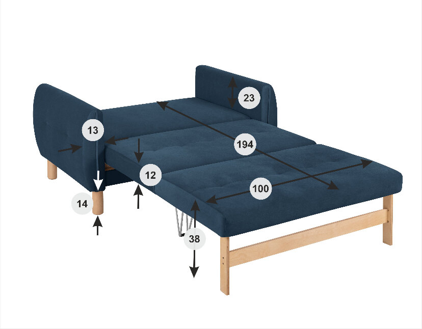 Купить Диван-кровать Аспен , 128*80*81, спальное 100*194, велюр синий, Велутто 26