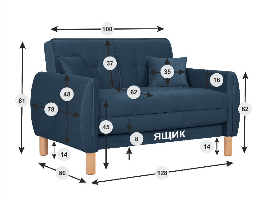 СохранитьДиван-кровать Аспен , 128*80*81, спальное 100*194, велюр синий, Велутто 26 интересное: