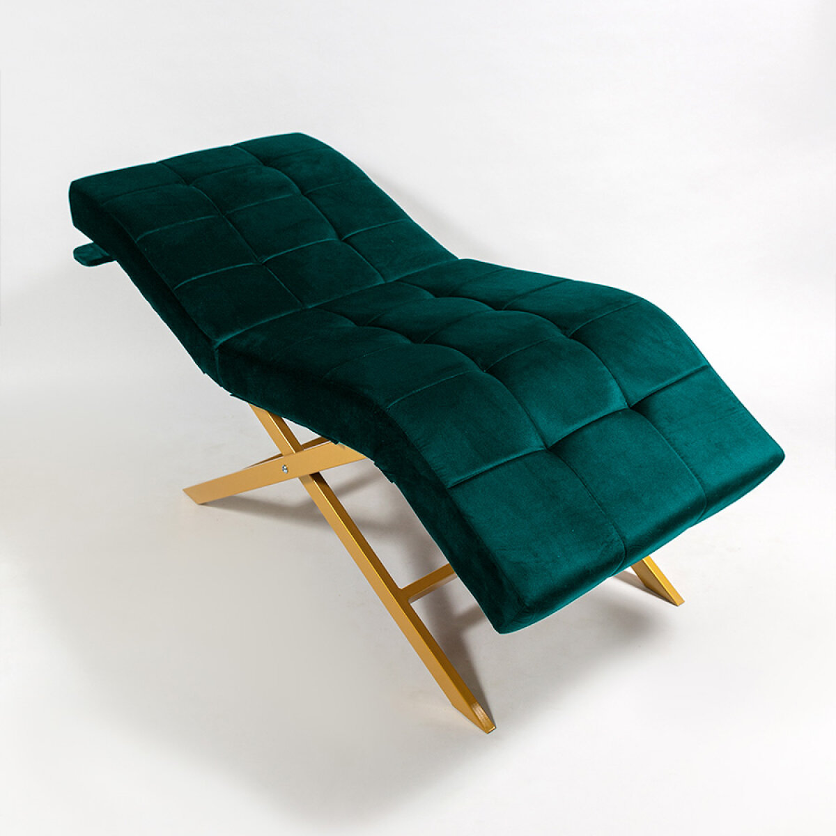 Купить Кушетка анатомическая Квадрат лофт, для наращивания ресниц, косметологическая, ноги золотистый металл, изумрудный