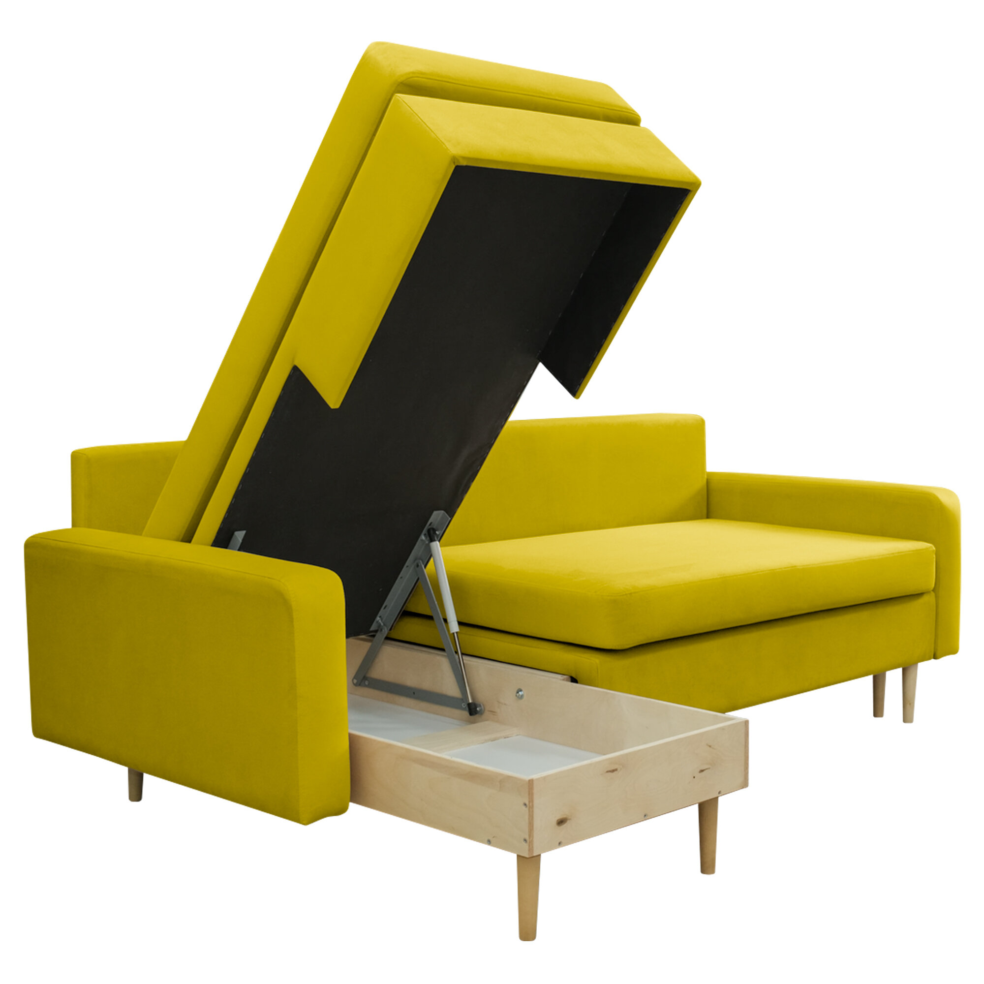 Диван-кровать угловой Сканди желтый, правый угол, механизм Тик-так, 222х150х107 см