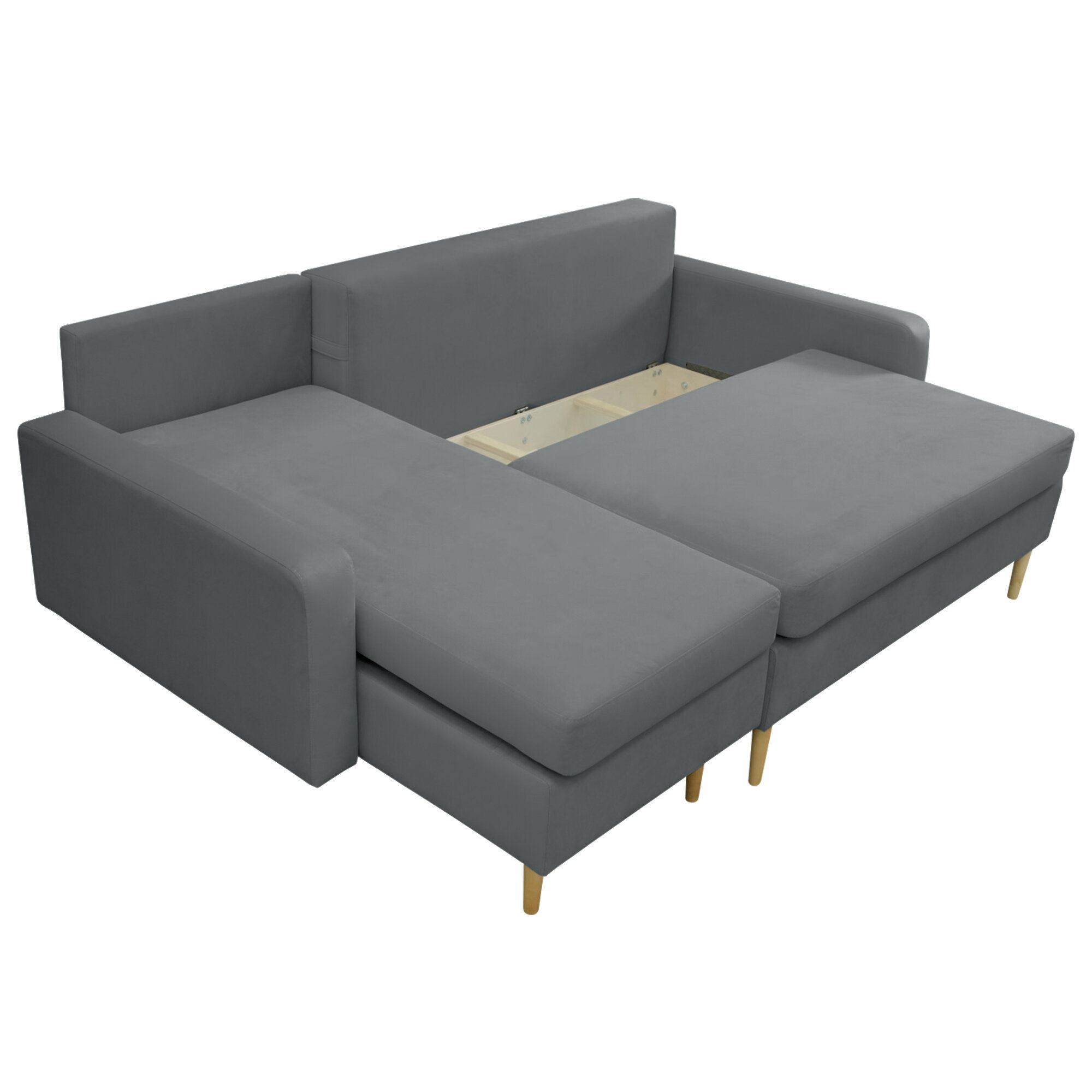 Диван-кровать угловой Сканди серый, правый угол, механизм Тик-так, 222х150х107 см