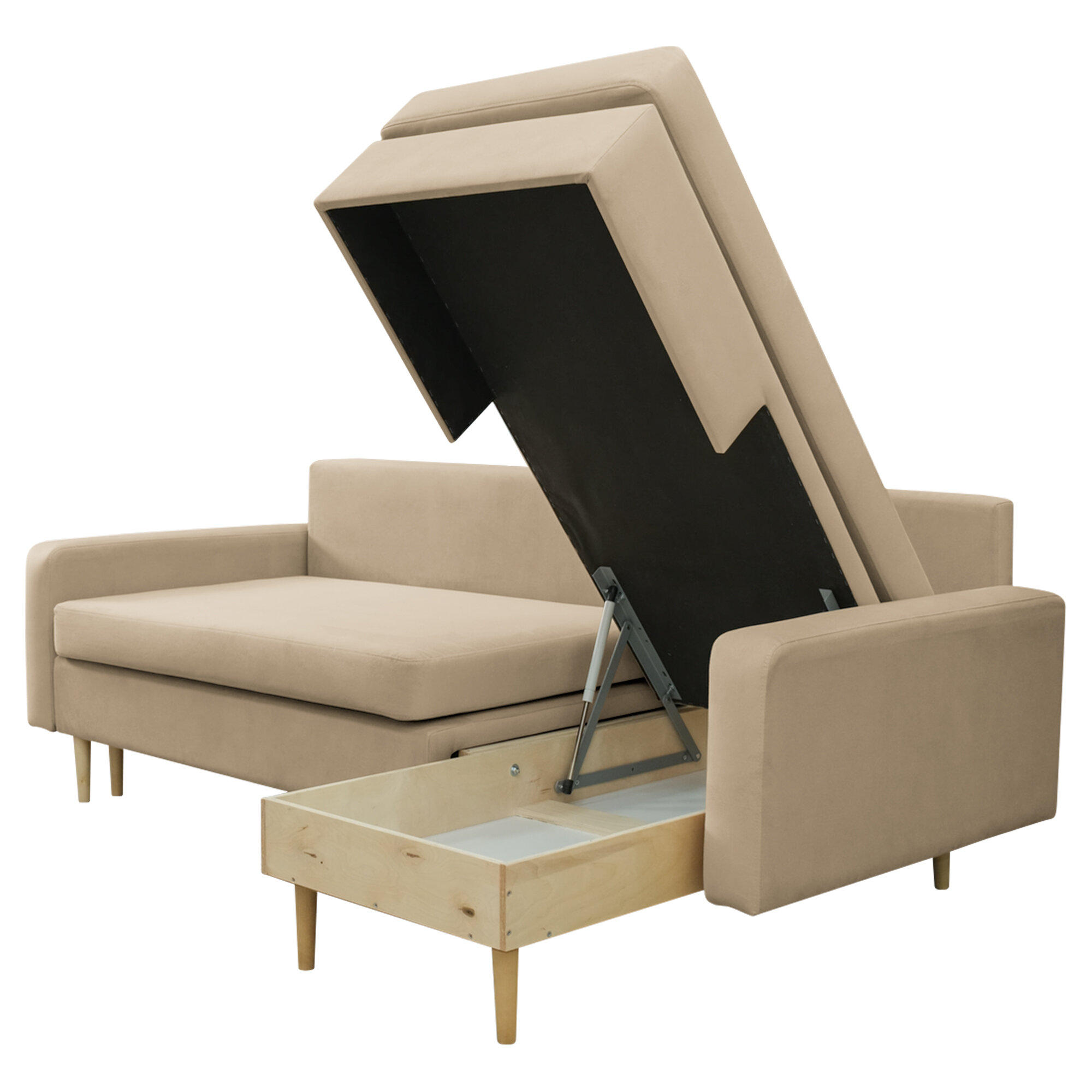 Диван-кровать угловой Сканди бежевый, левый угол, механизм Тик-так, 222х150х107 см