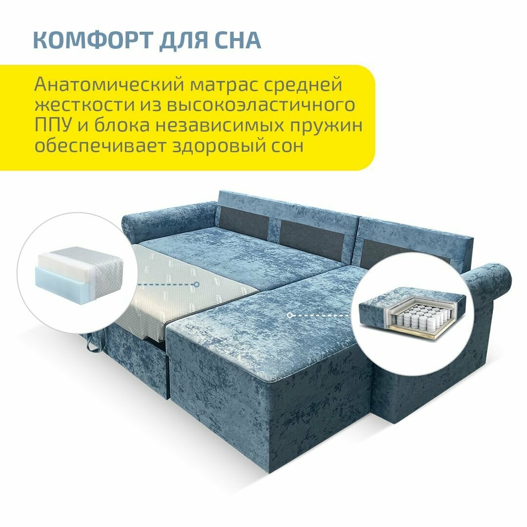 Купить Угловой диван AH! DIVAN (АхДиван) Астрид 242х150х71, раскладной диван-кровать, механизм дельфин, темно-голубой велюр
