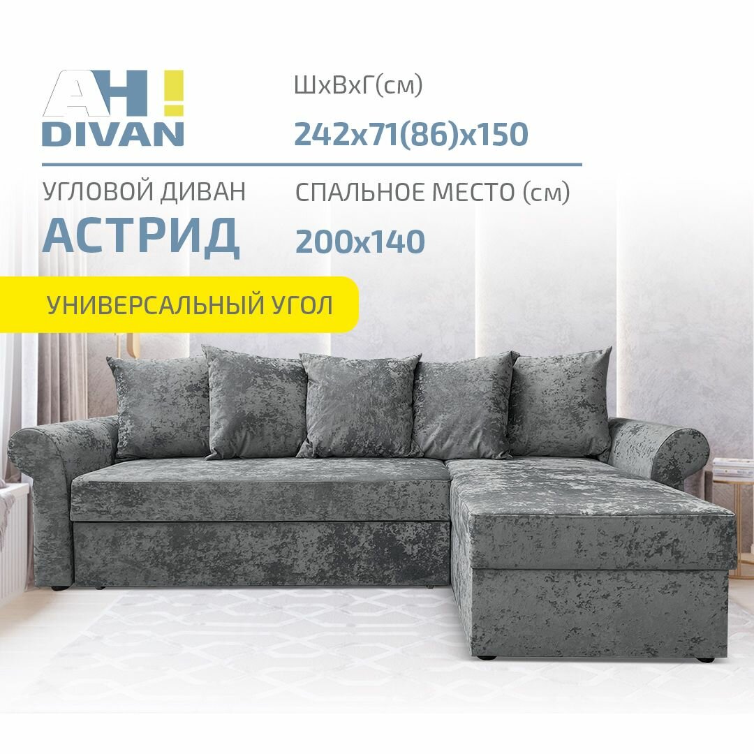 Купить Угловой диван AH! DIVAN (АхДиван) Астрид 242х150х71, раскладной диван-кровать, механизм дельфин, серый плюш