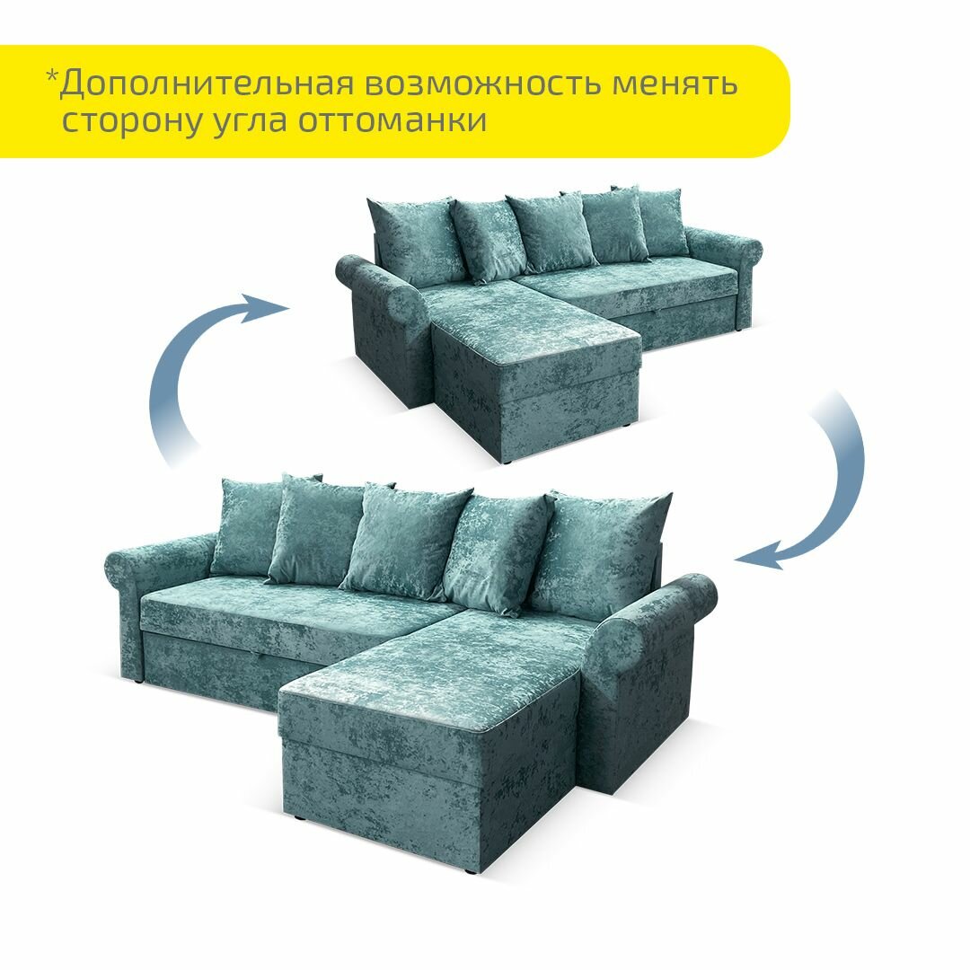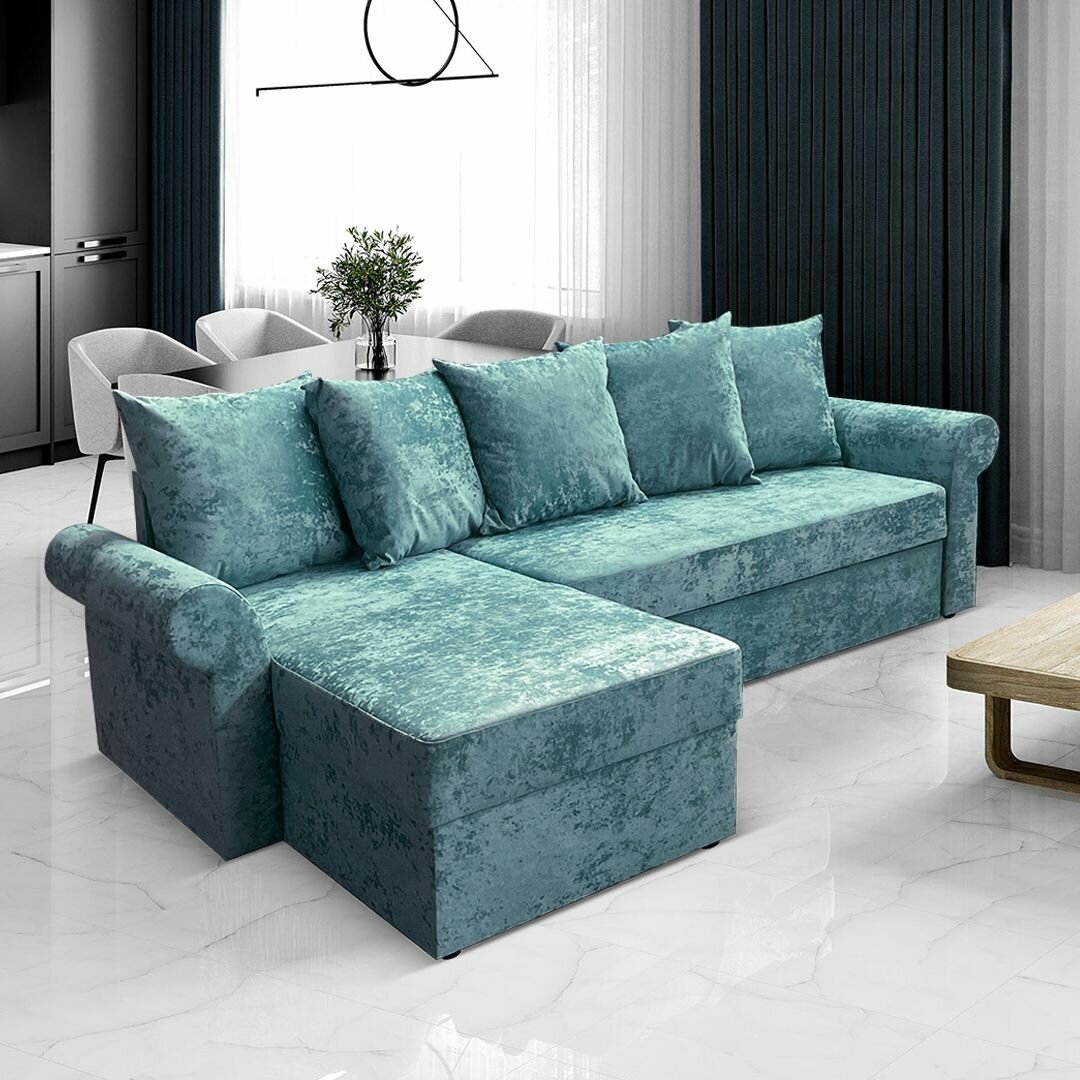 Купить Угловой диван AH! DIVAN (АхДиван) Астрид 242х150х71, раскладной диван-кровать, механизм дельфин, ментол плюш