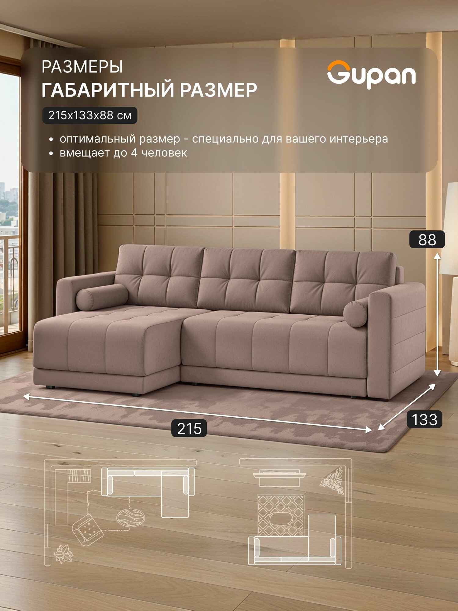 СохранитьДиван угловой Gupan Скайти Велюр Amigo Latte, диван раскладной, механизм еврокнижка, беспружинный, с ящиком для белья интересное: