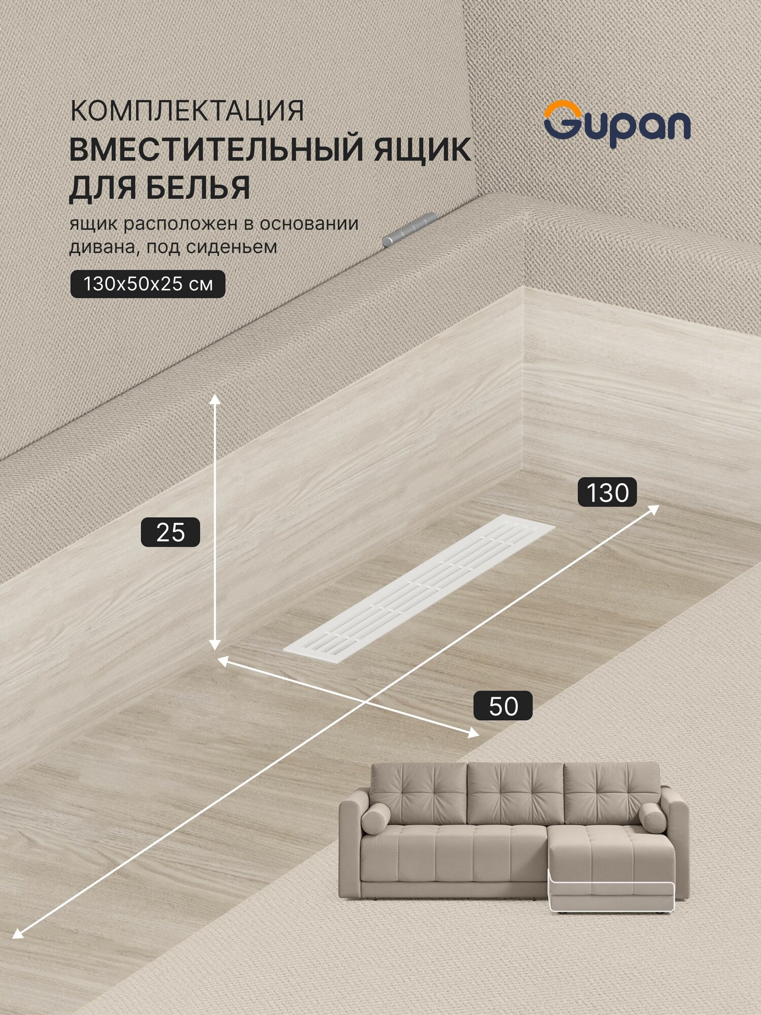 Диван угловой Gupan Скайти Велюр Amigo Latte, диван раскладной, механизм еврокнижка, беспружинный, с ящиком для белья