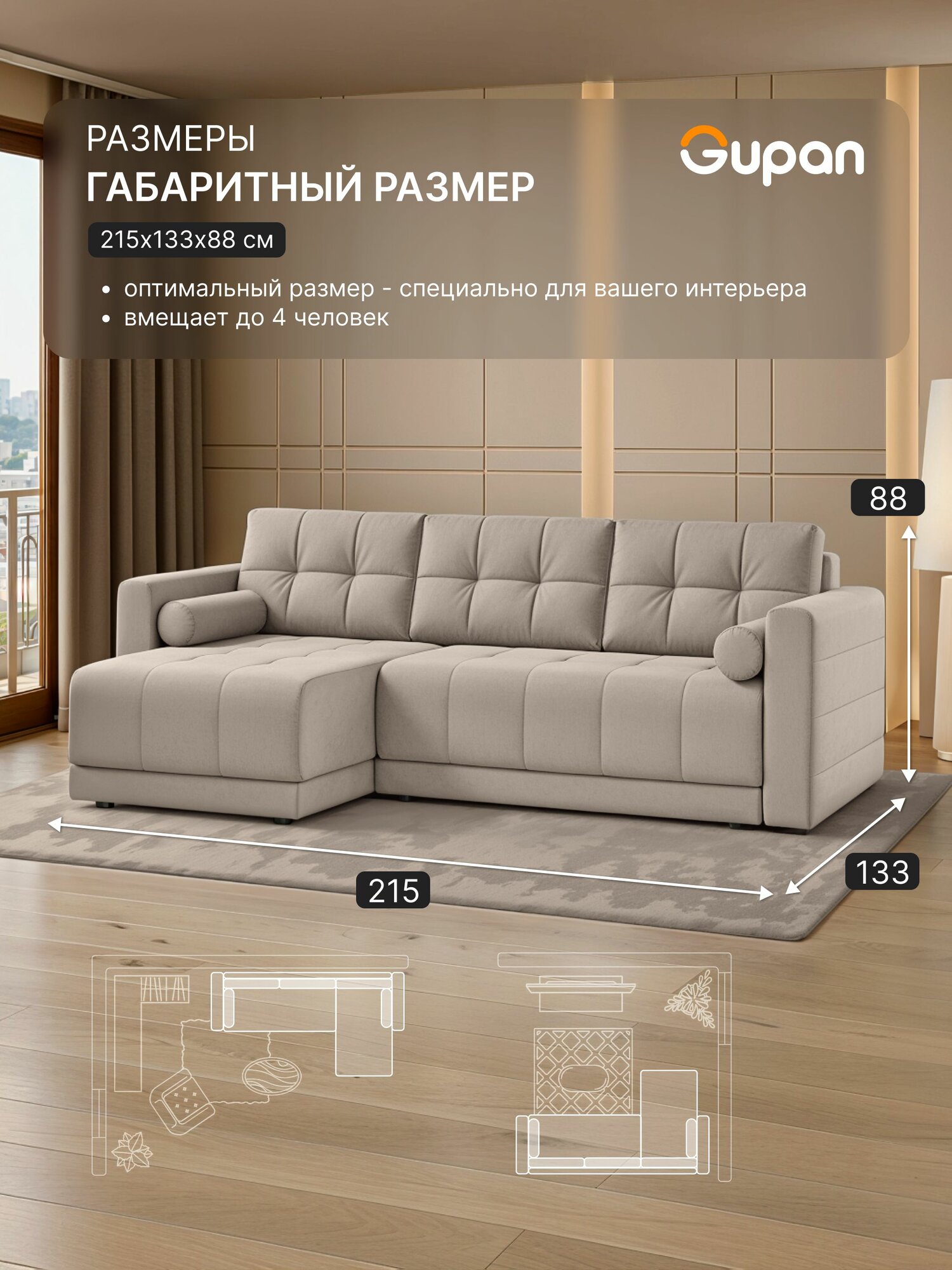 СохранитьДиван угловой Gupan Скайти Велюр Amigo Cream, диван раскладной, механизм еврокнижка, беспружинный, с ящиком для белья интересное: