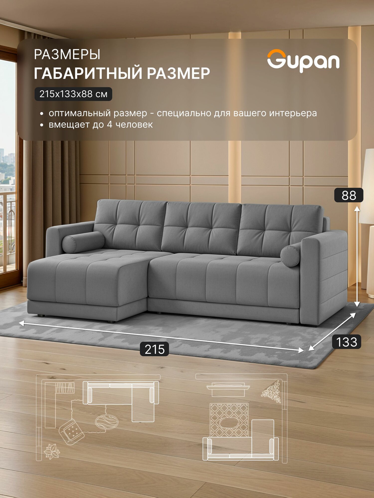 СохранитьДиван угловой Gupan Скайти Велюр Amigo Grey, диван раскладной, механизм еврокнижка, беспружинный, с ящиком для белья интересное: