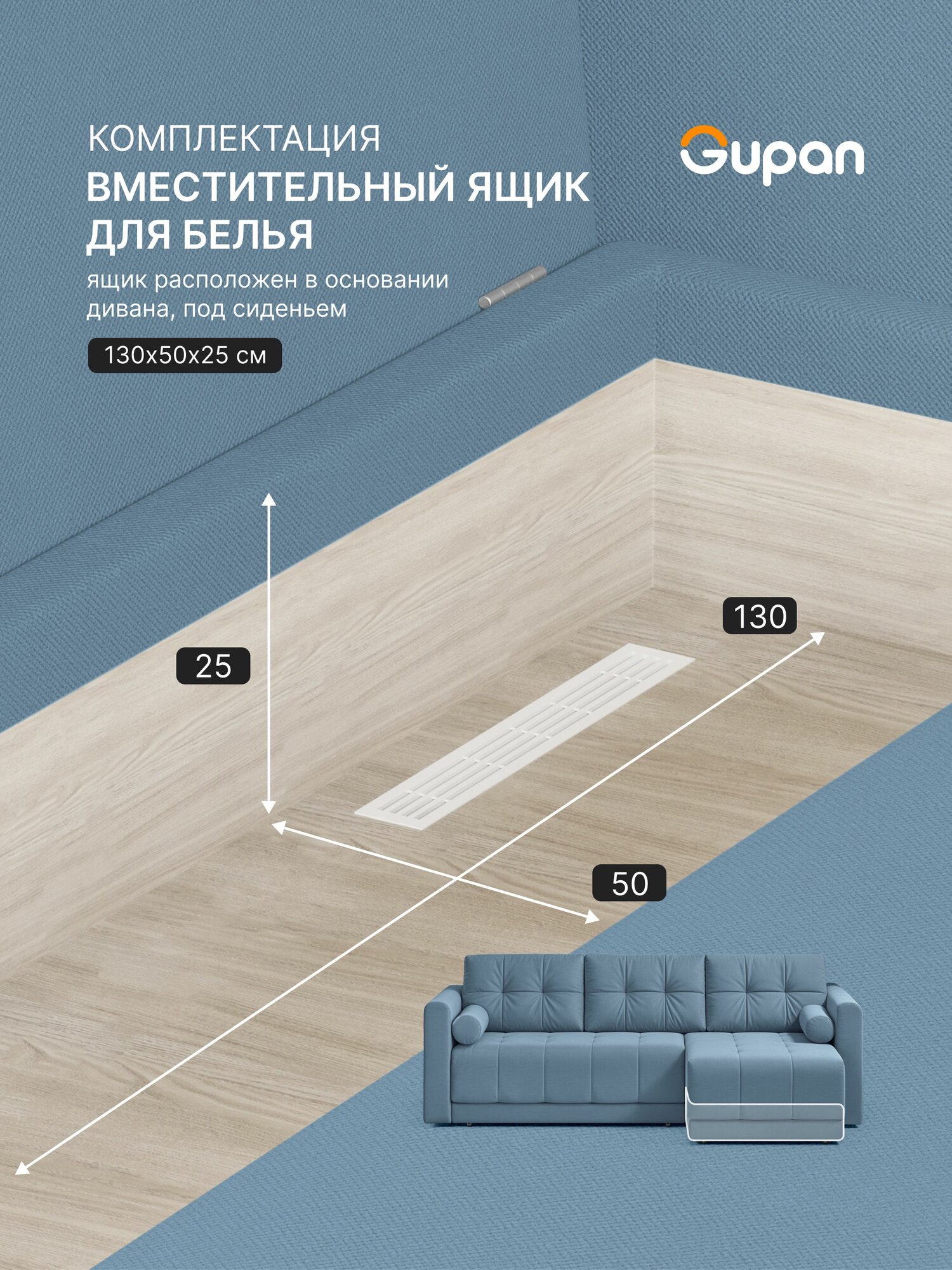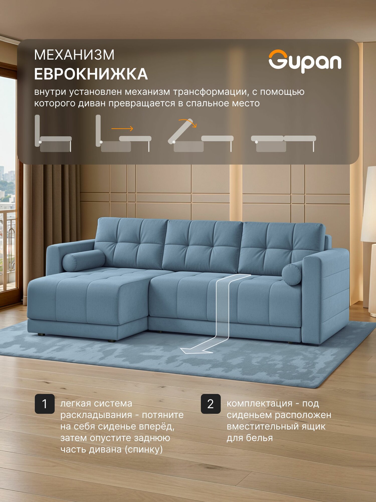 СохранитьДиван угловой Gupan Скайти Велюр Amigo Blue, диван раскладной, механизм еврокнижка, беспружинный, с ящиком для белья интересное: