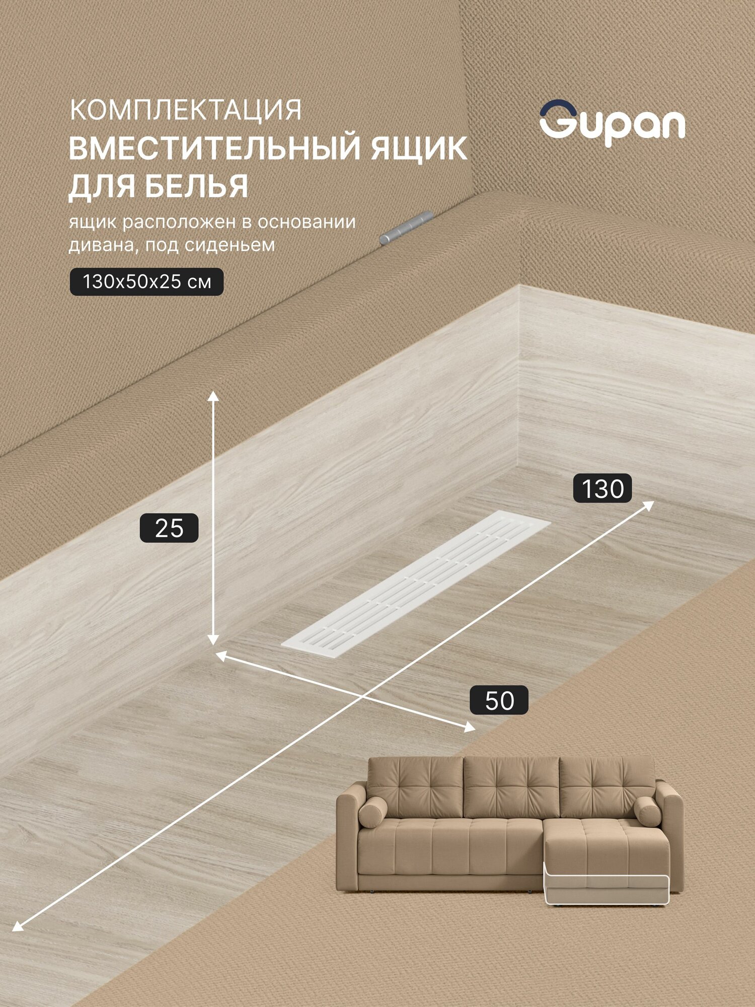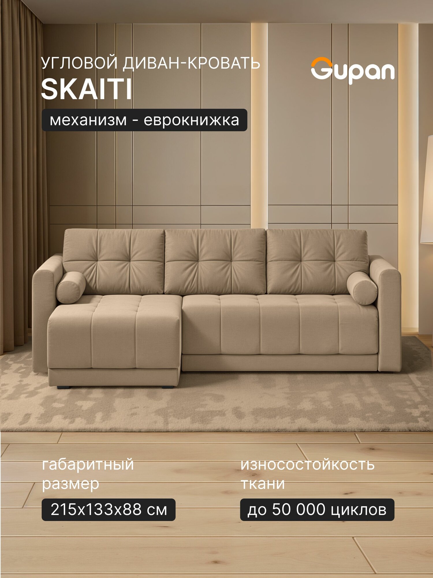 Купить Диван угловой Gupan Скайти Велюр Amigo Beige, диван раскладной, механизм еврокнижка, беспружинный, с ящиком для белья