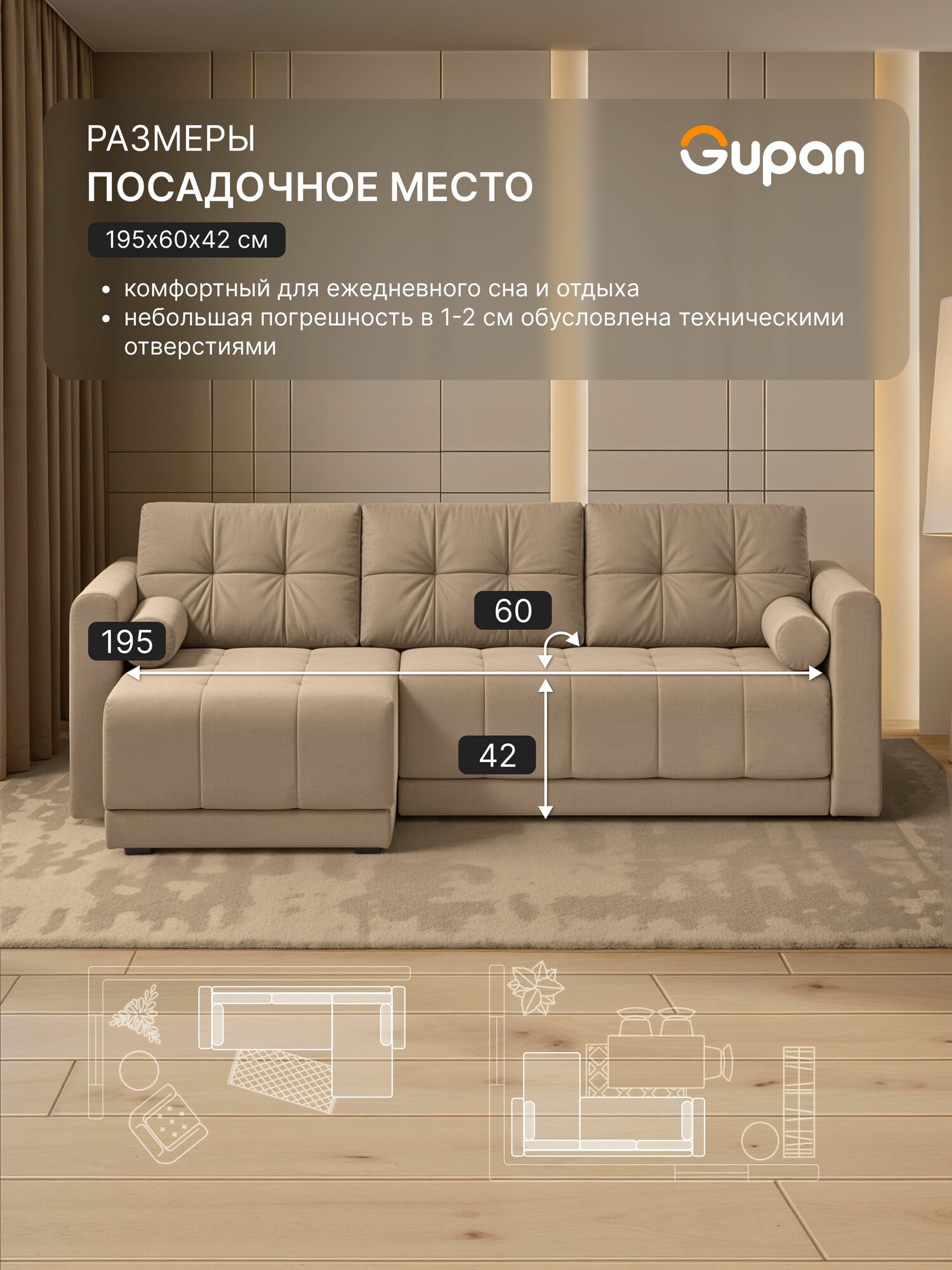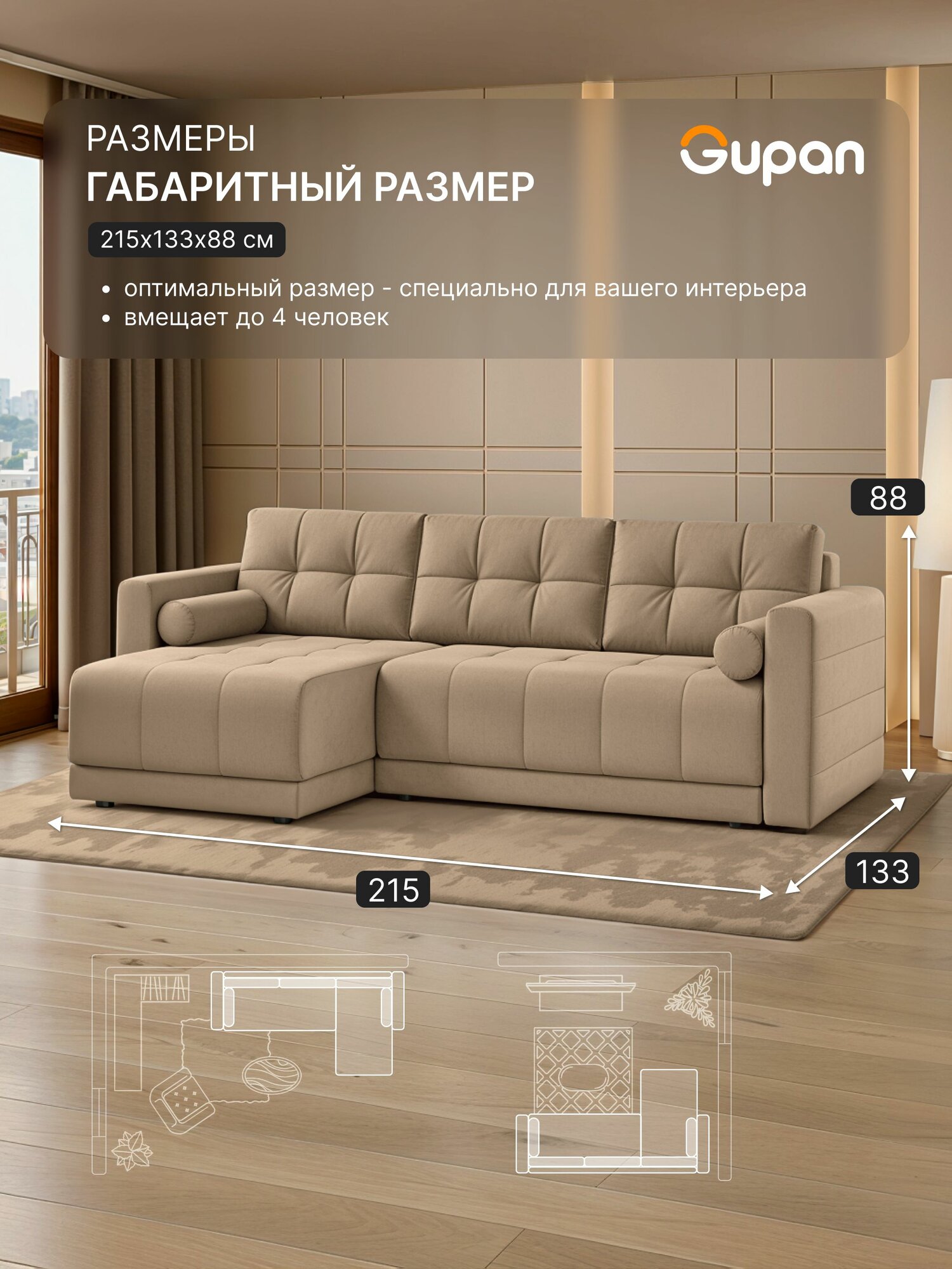 СохранитьДиван угловой Gupan Скайти Велюр Amigo Beige, диван раскладной, механизм еврокнижка, беспружинный, с ящиком для белья интересное: