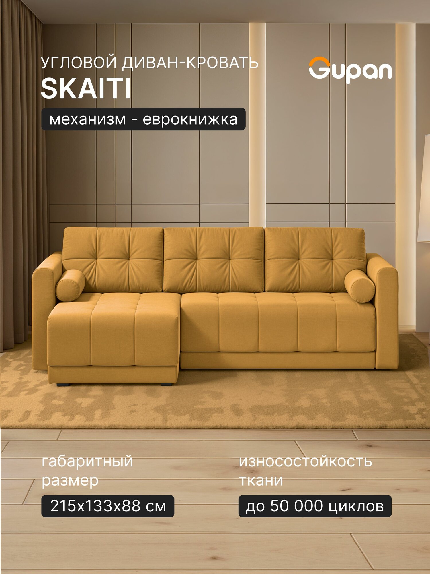 СохранитьДиван угловой Gupan Скайти Велюр Amigo Yellow, диван раскладной, механизм еврокнижка, беспружинный, с ящиком для белья интересное: