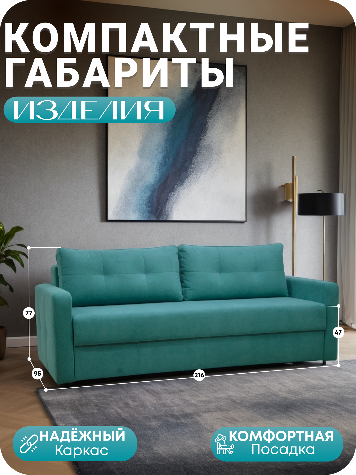 Диван-кровать Эрвин, Центр Мебель, 210x95x77, цвет бирюзовый, еврокнижка интересное:
