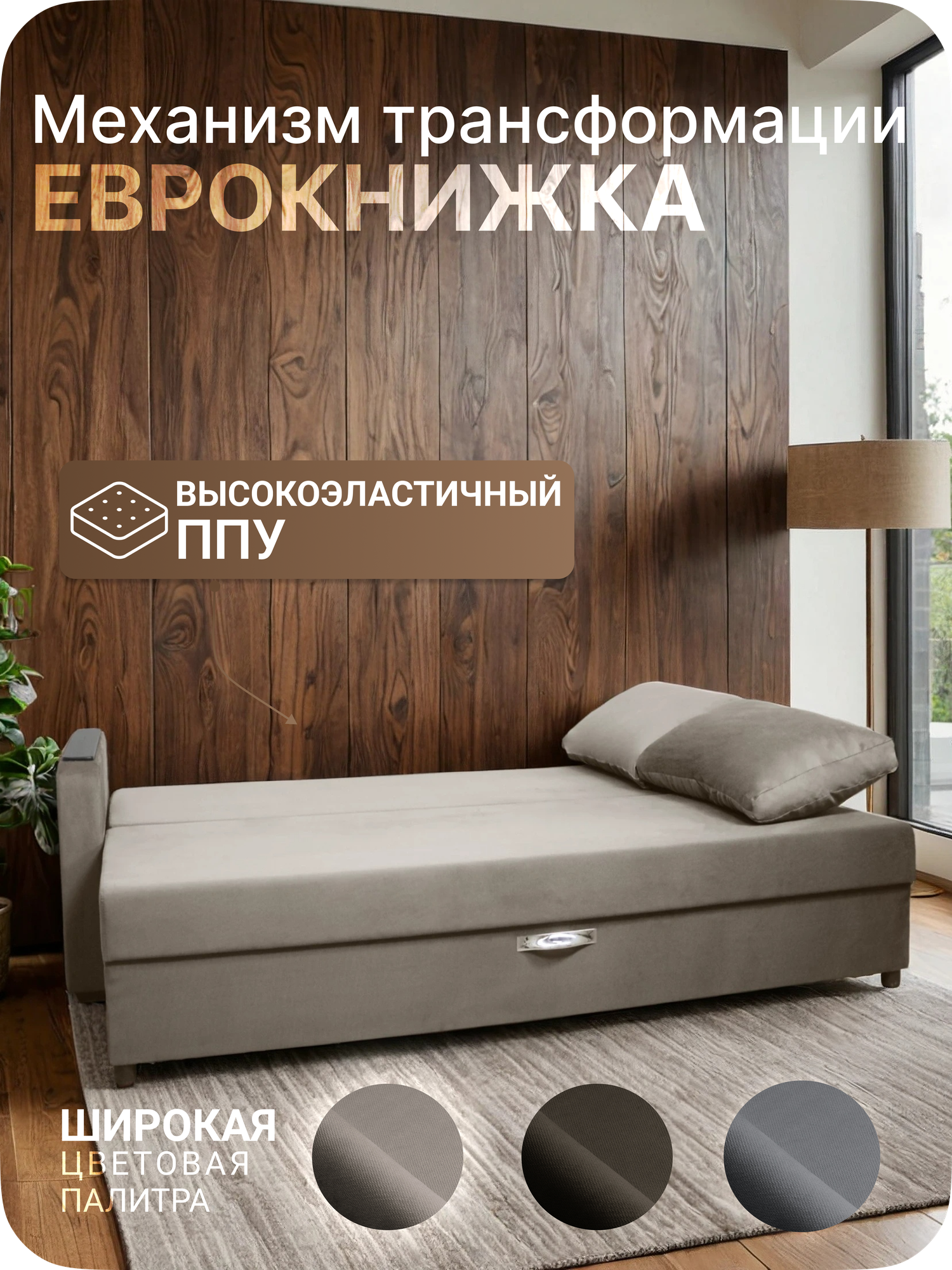 Диван-кровать Эрвин, Центр Мебель, 200x95x77, цвет серый, еврокнижка