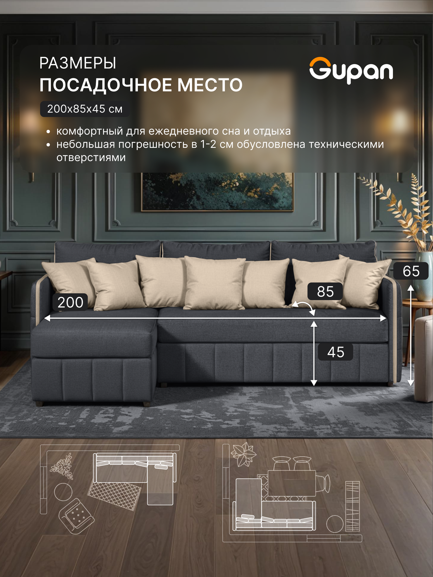 СохранитьДиван угловой Gupan Граус Велюр Amigo Grafit, раскладной, механизм дельфин, беспружинный, с ящиком для белья интересное: