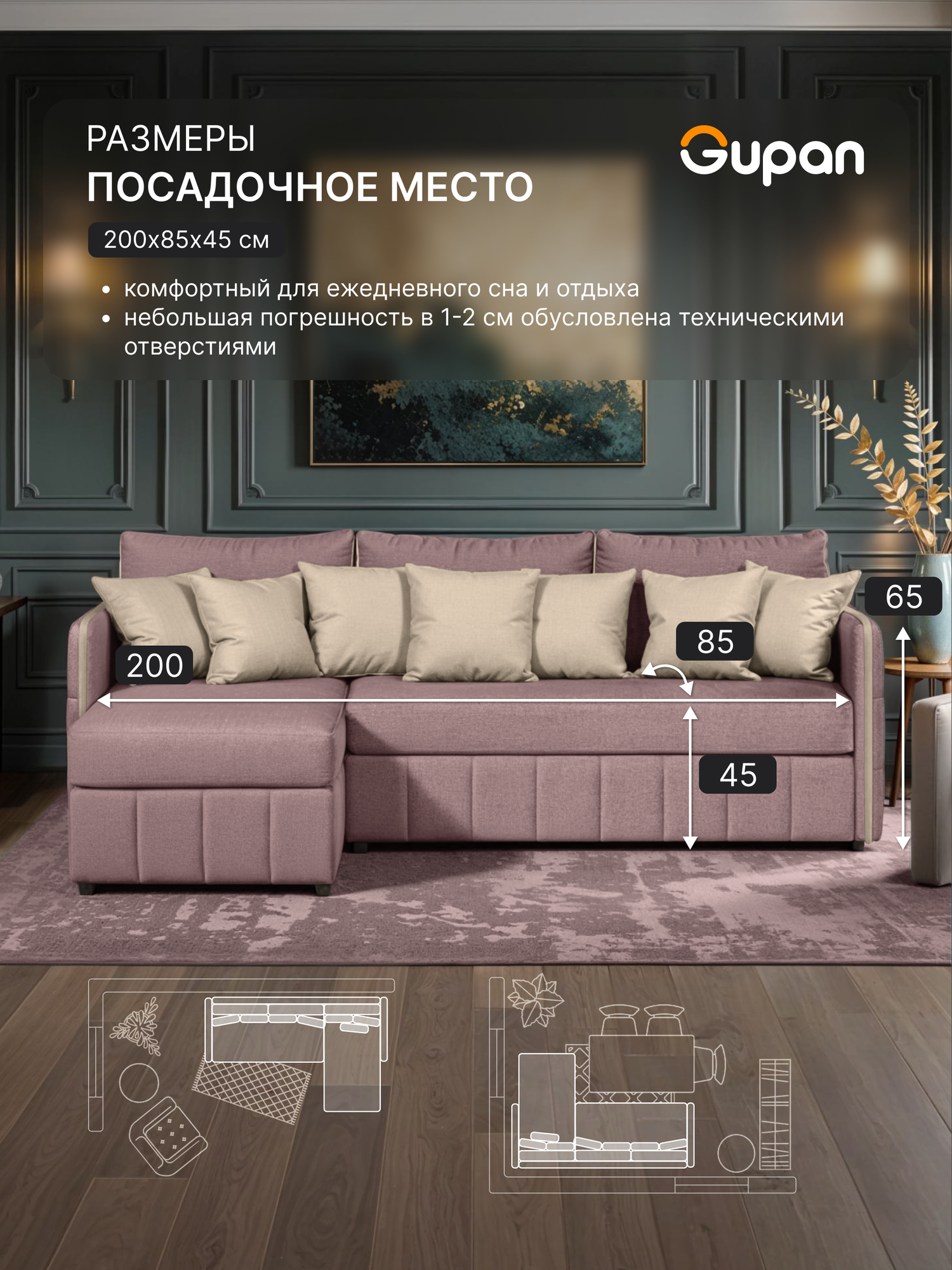Диван угловой Gupan Граус Велюр Amigo Dimrose, раскладной, механизм дельфин, беспружинный, с ящиком для белья