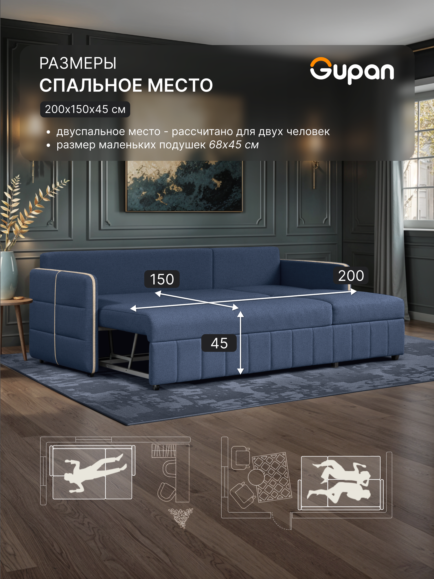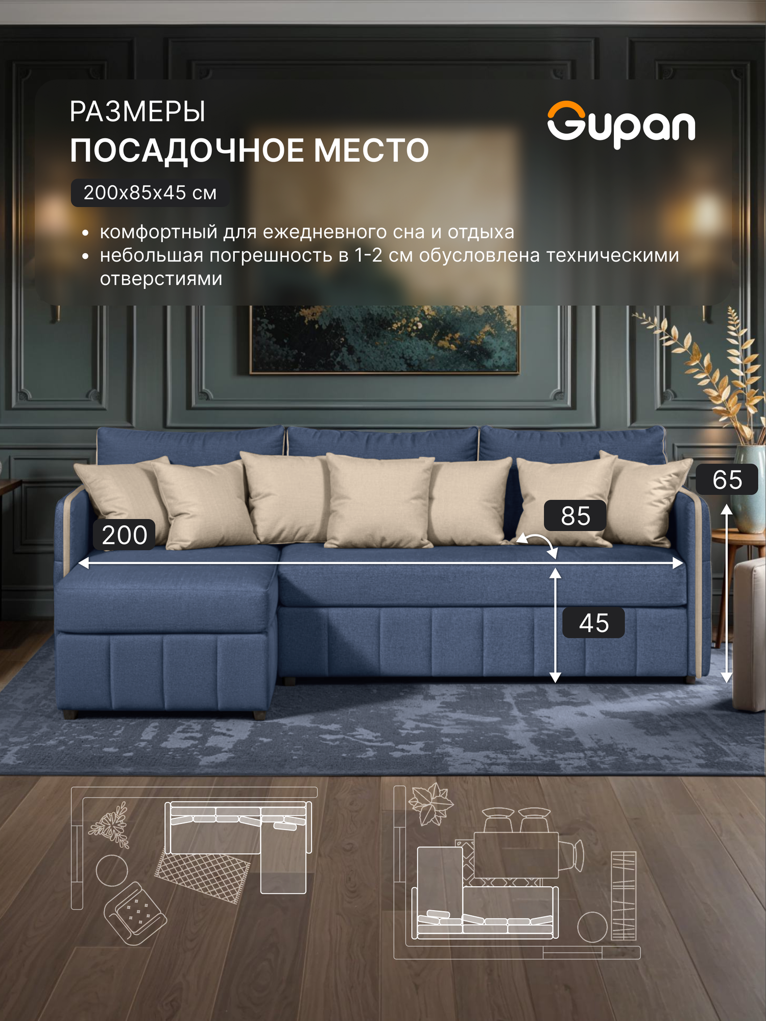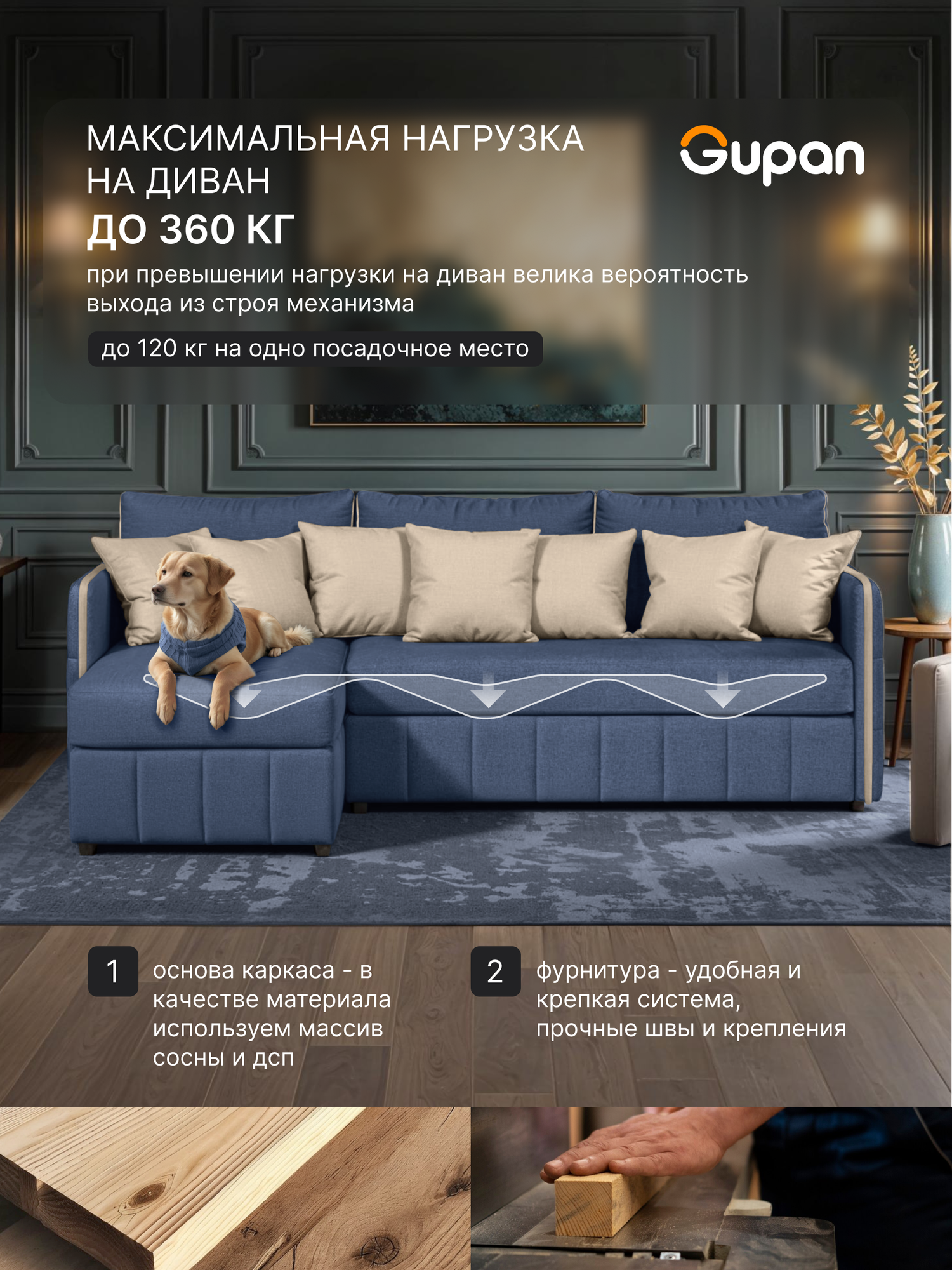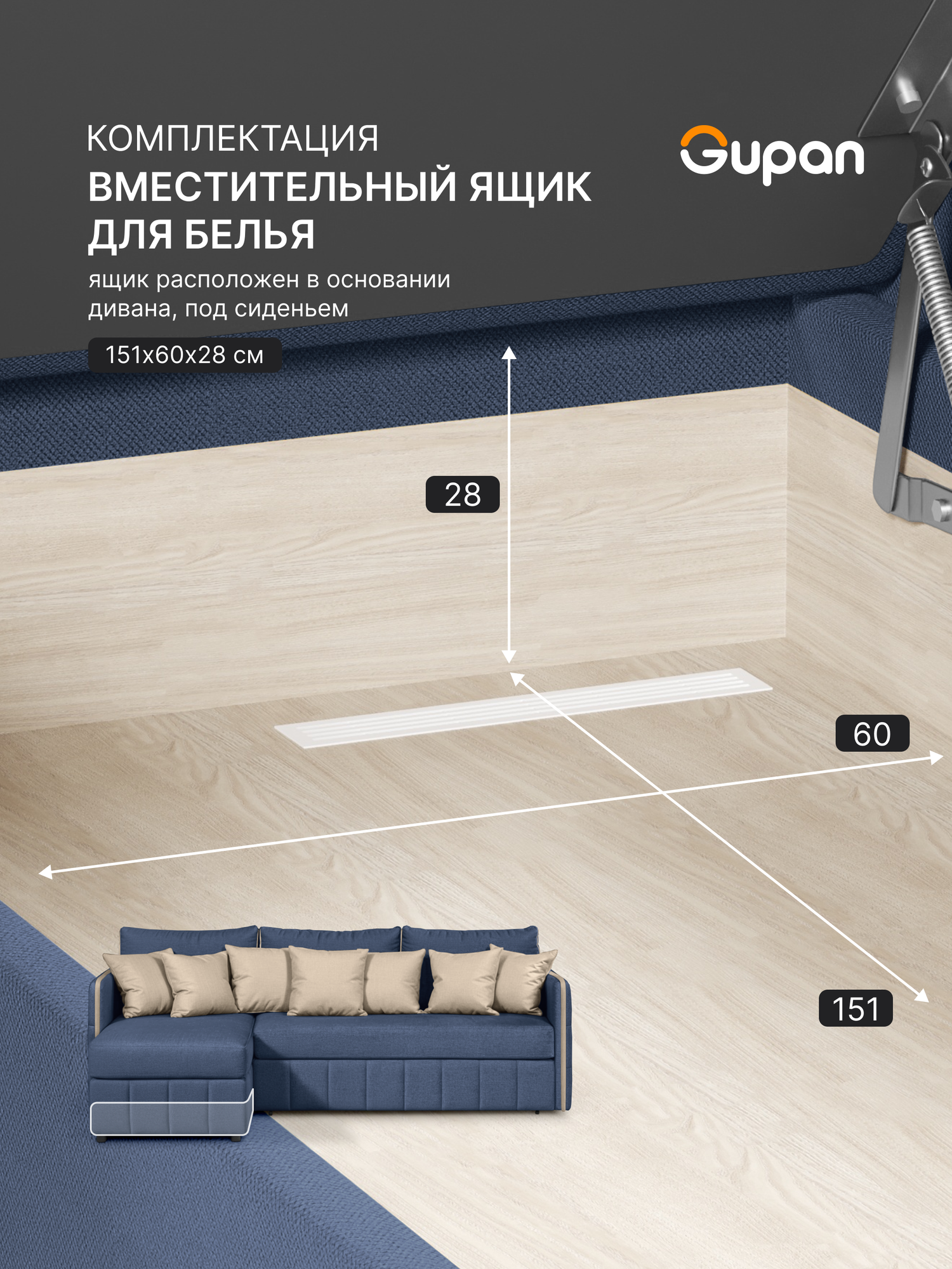 СохранитьДиван угловой Gupan Граус Велюр Amigo Navy, раскладной, механизм дельфин, беспружинный, с ящиком для белья интересное: