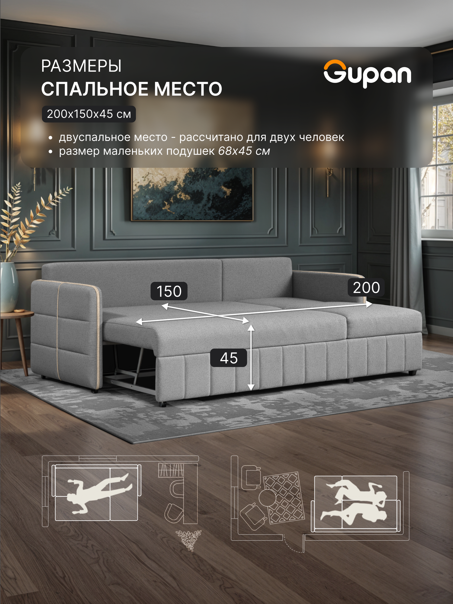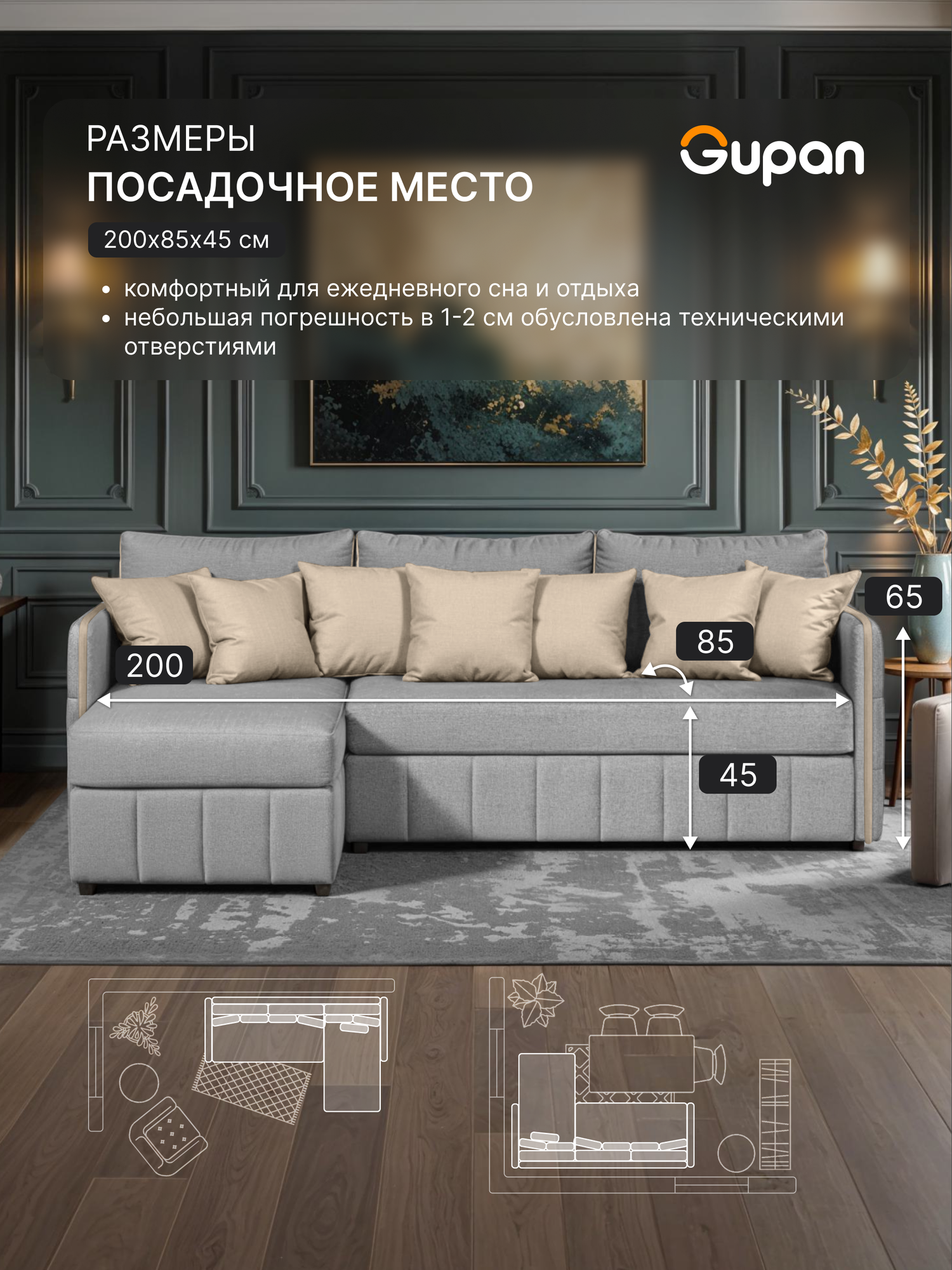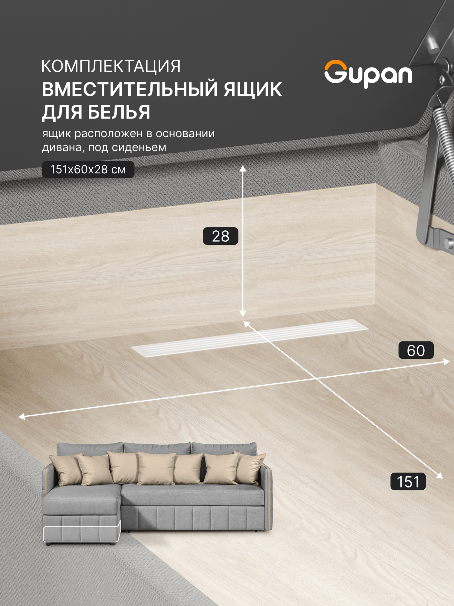 СохранитьДиван угловой Gupan Граус Велюр Amigo Ash, раскладной, механизм дельфин, беспружинный, с ящиком для белья интересное: