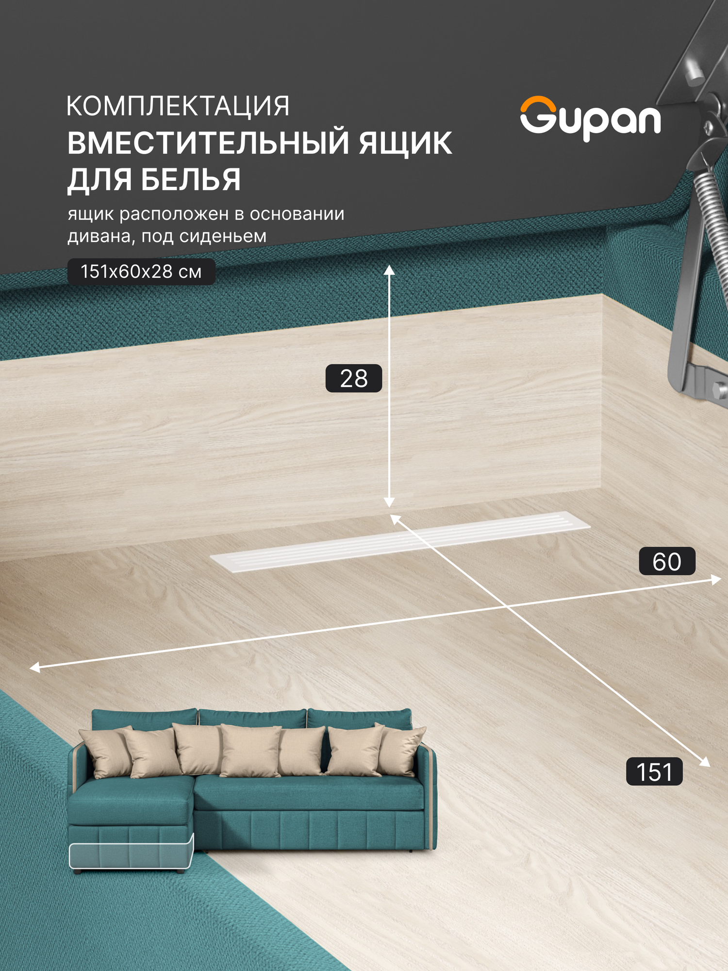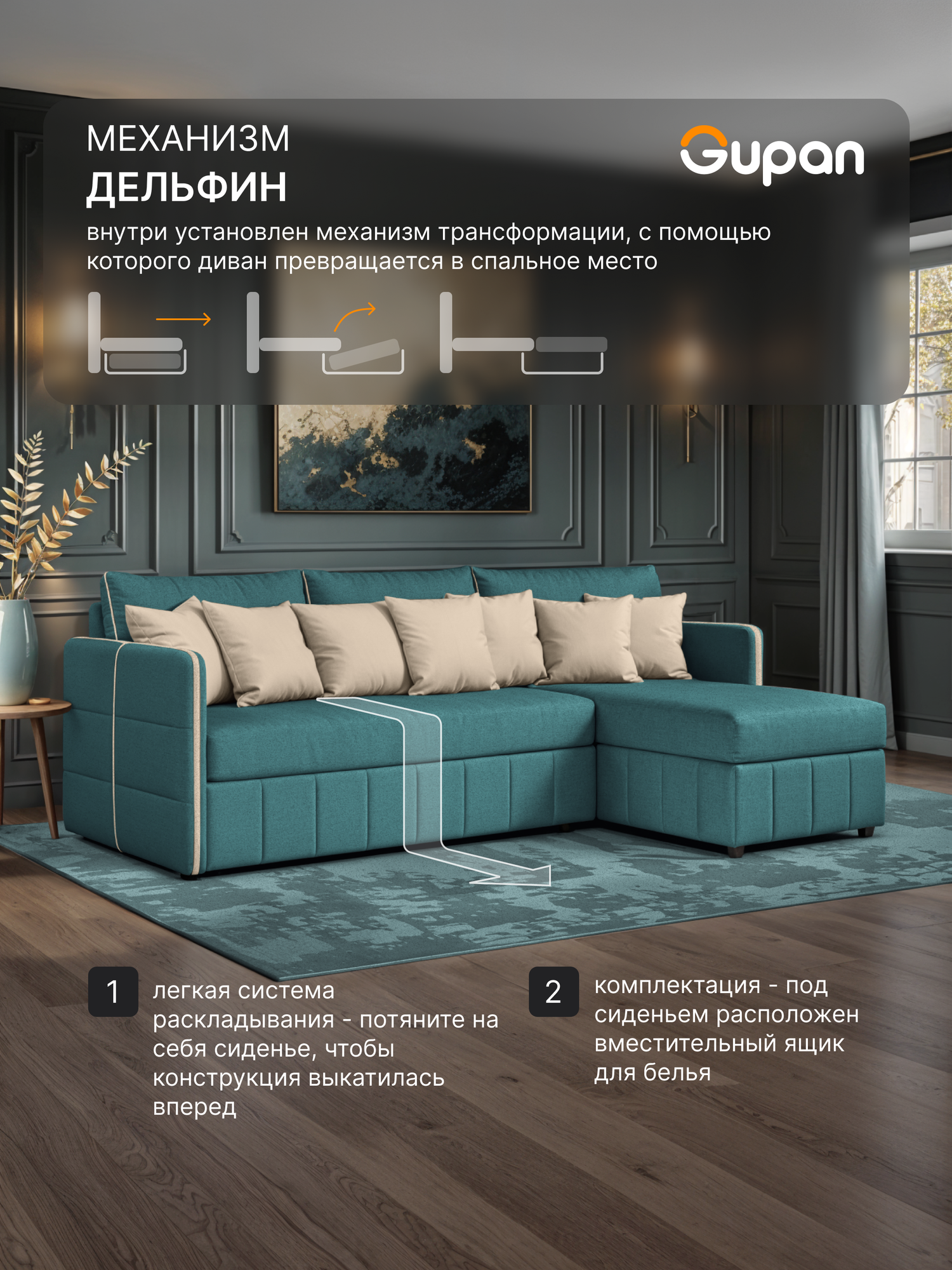 СохранитьДиван угловой Gupan Граус Велюр Amigo Lagoon, раскладной, механизм дельфин, беспружинный, с ящиком для белья интересное:
