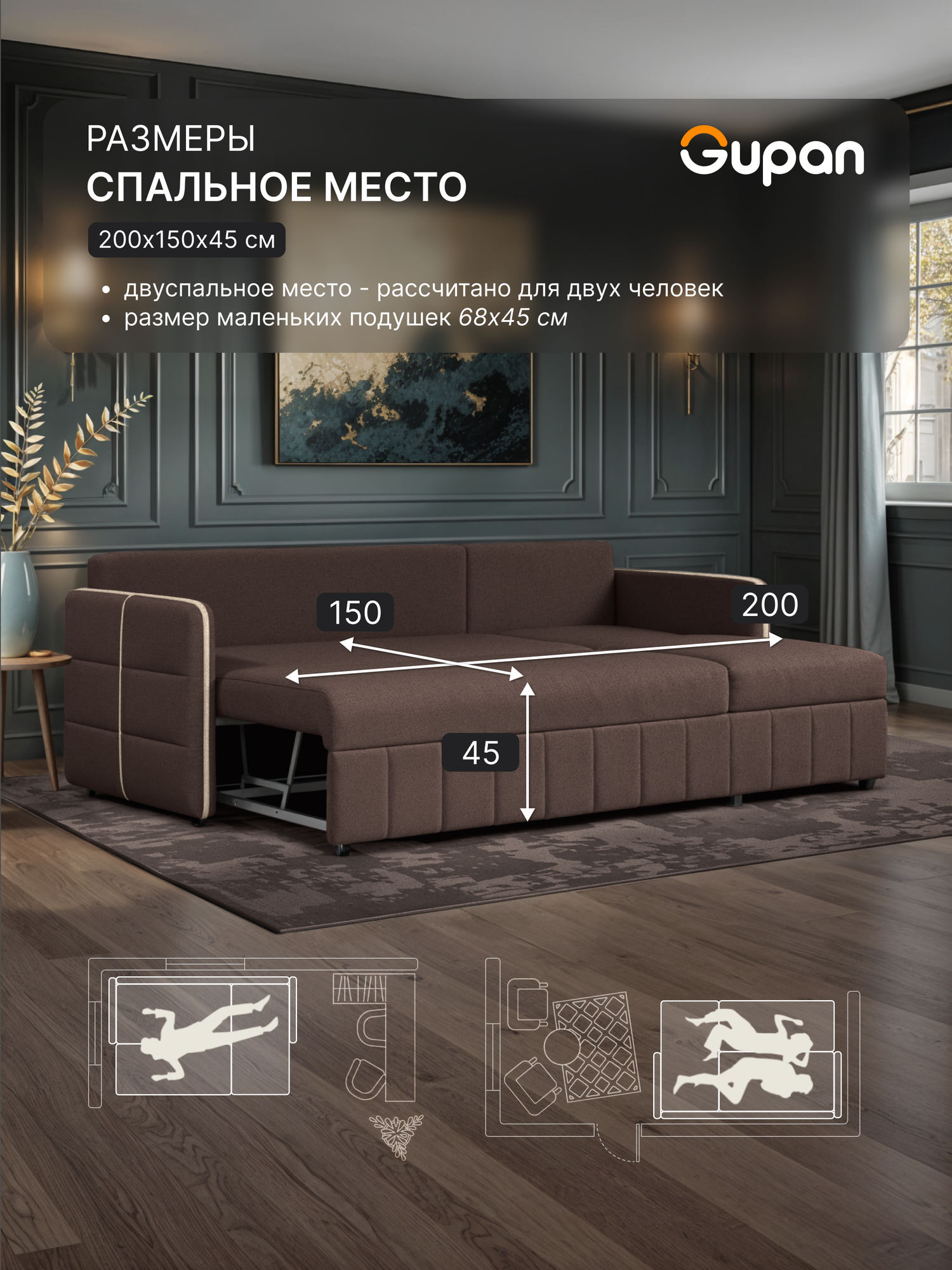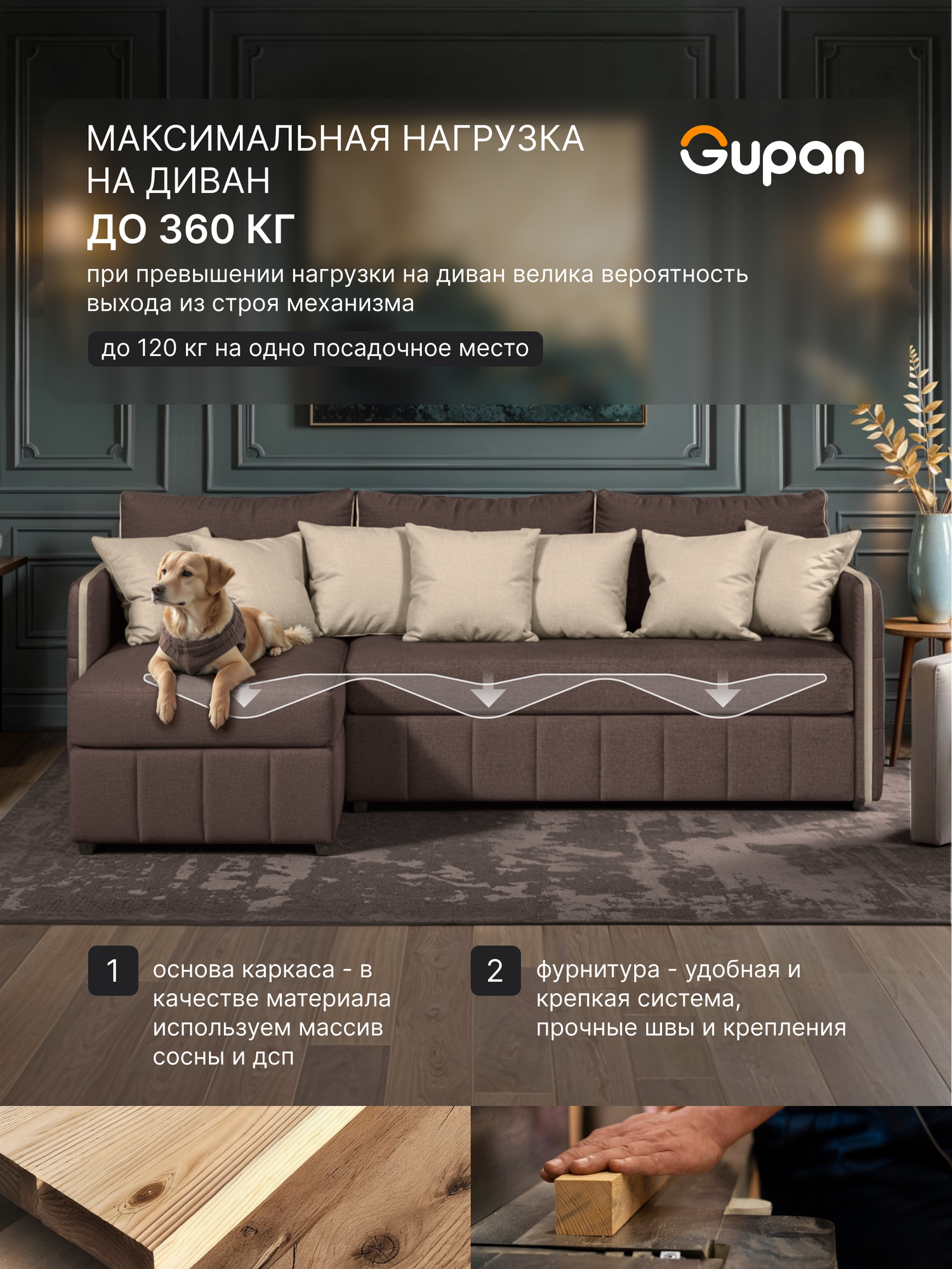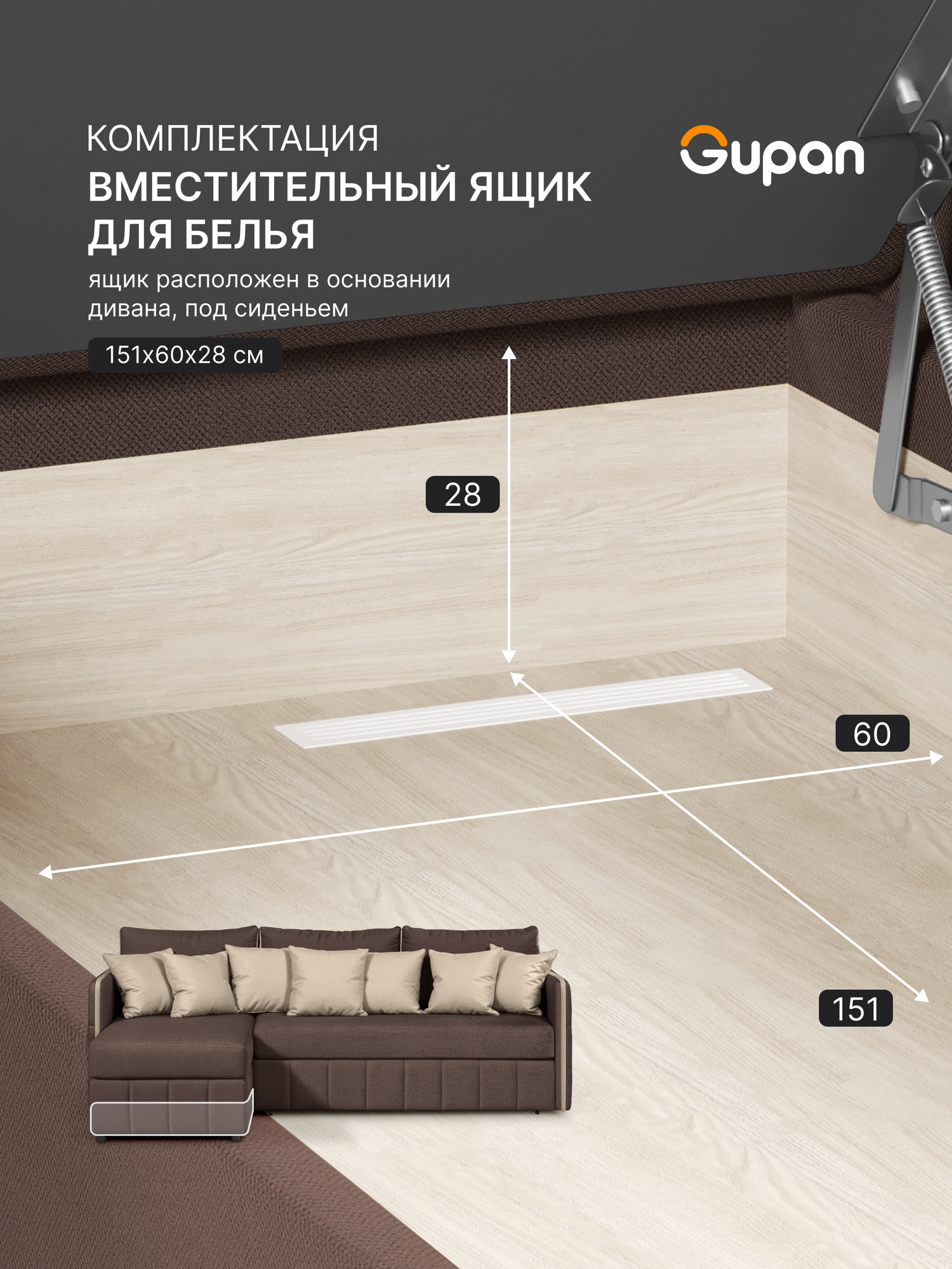 СохранитьДиван угловой Gupan Граус Велюр Amigo Brown, раскладной, механизм дельфин, беспружинный, с ящиком для белья интересное: