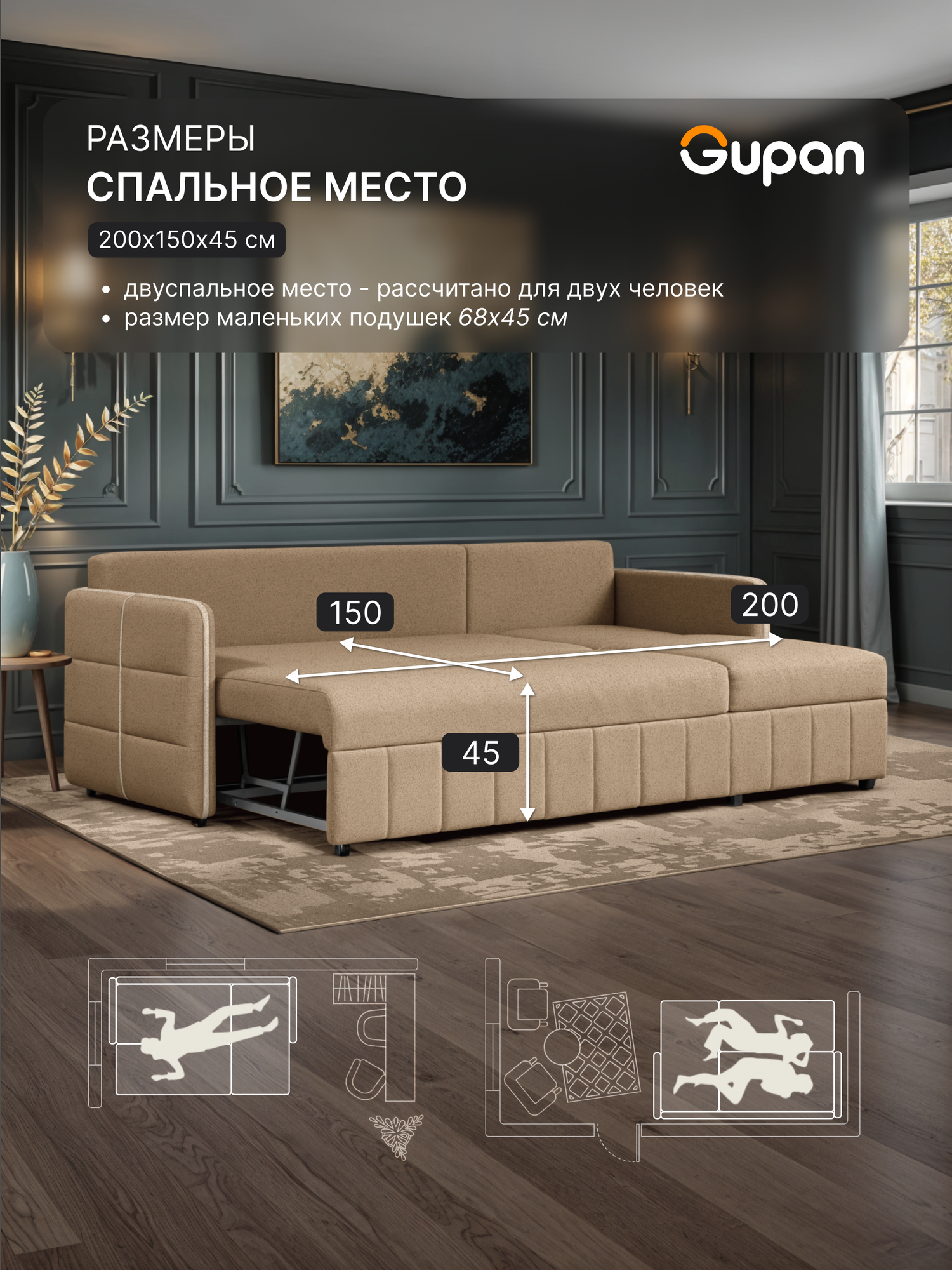 СохранитьДиван угловой Gupan Граус Велюр Amigo Beige, раскладной, механизм дельфин, беспружинный, с ящиком для белья интересное: