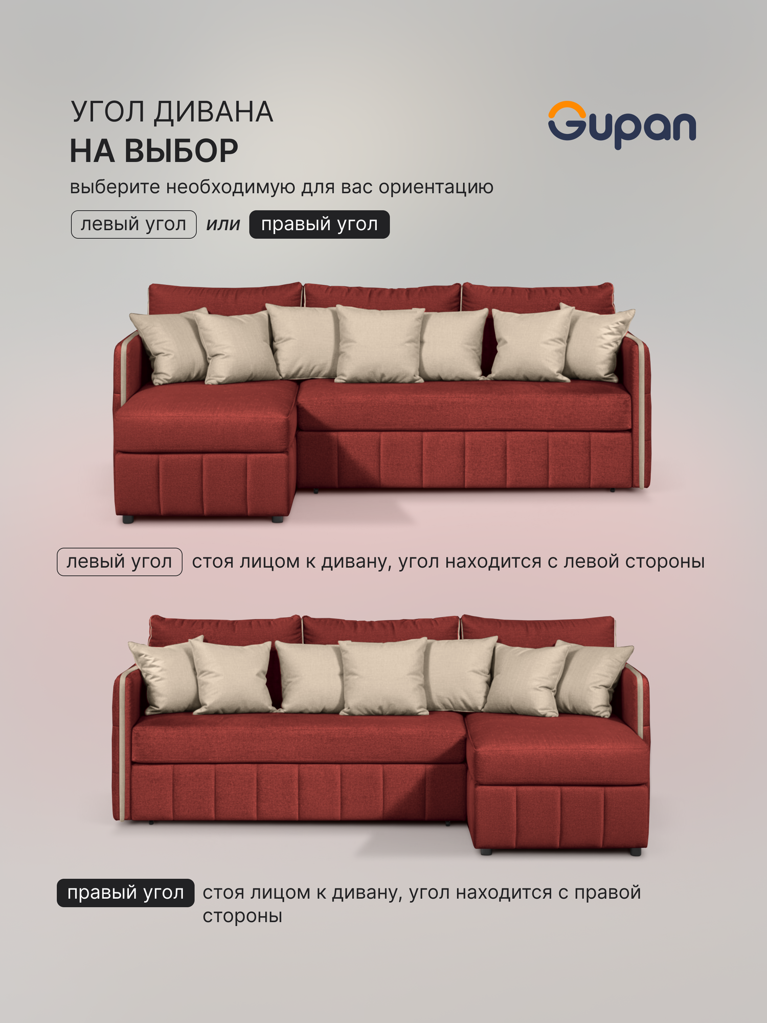 СохранитьДиван угловой Gupan Граус Велюр Amigo Terra, раскладной, механизм дельфин, беспружинный, с ящиком для белья интересное: