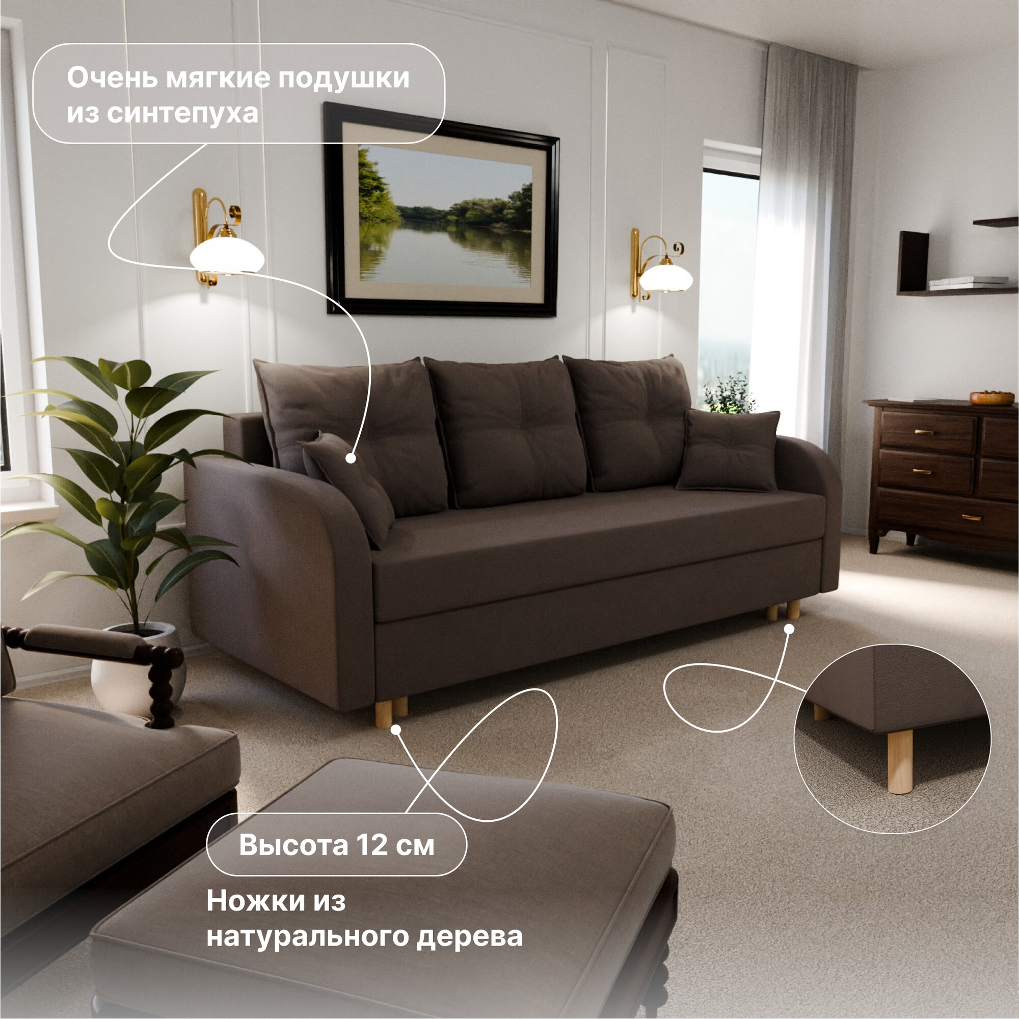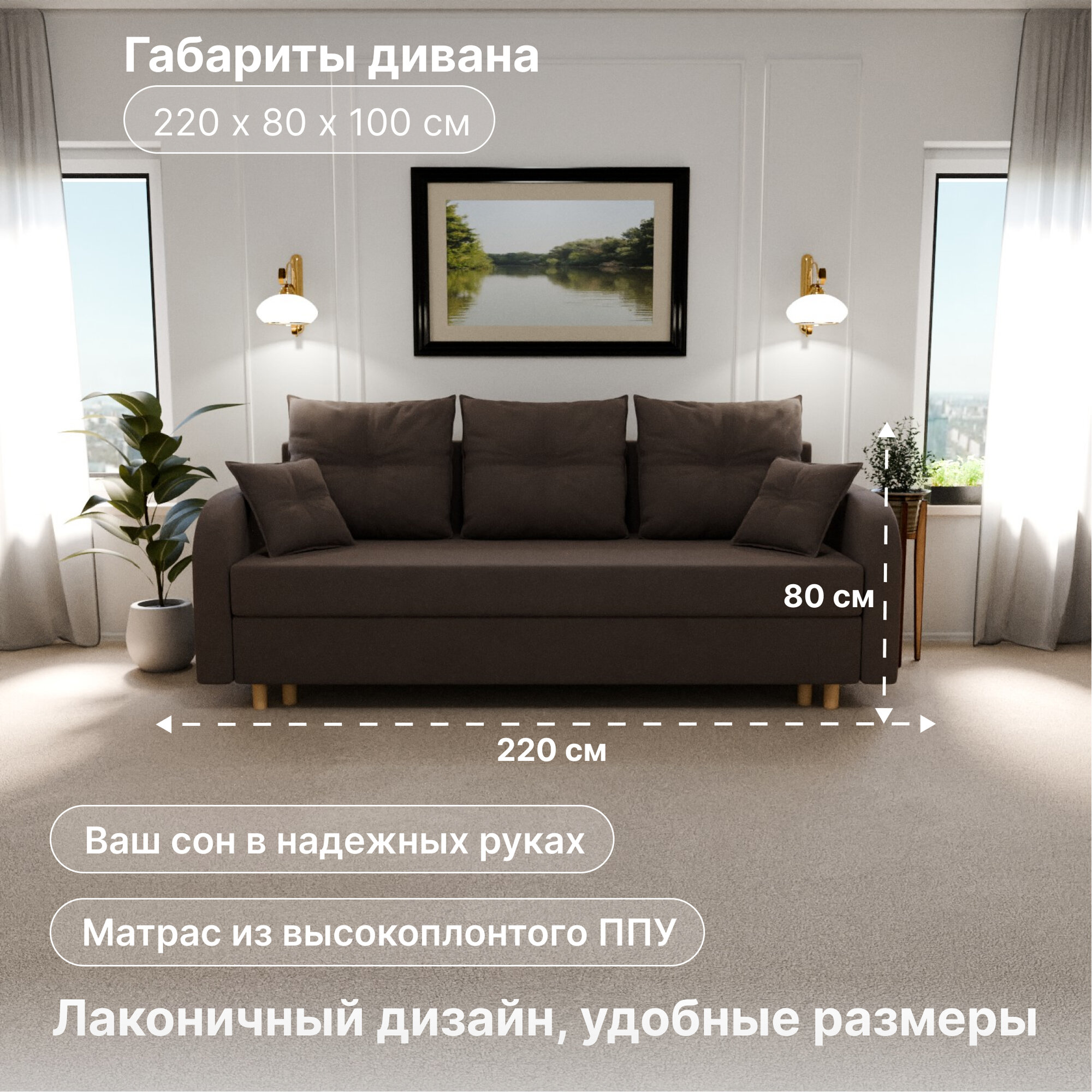 Купить Диван, диван-кровать, диван раскладной "Генри" ППУ, Велютта люкс 23, размеры 220х80х100, коричневый