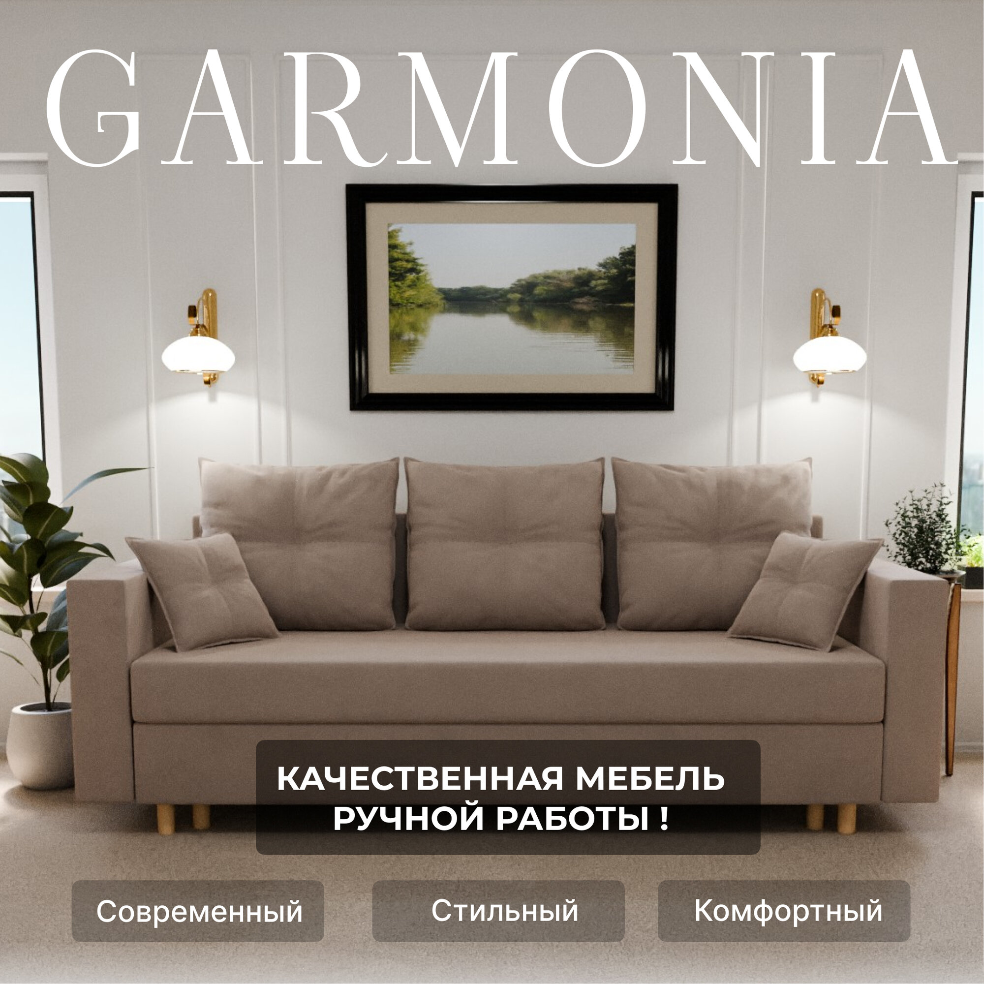 Купить Диван раскладной, "Garmonia", ППУ, Велютта люкс 07 размеры 220х80х100, бежевый
