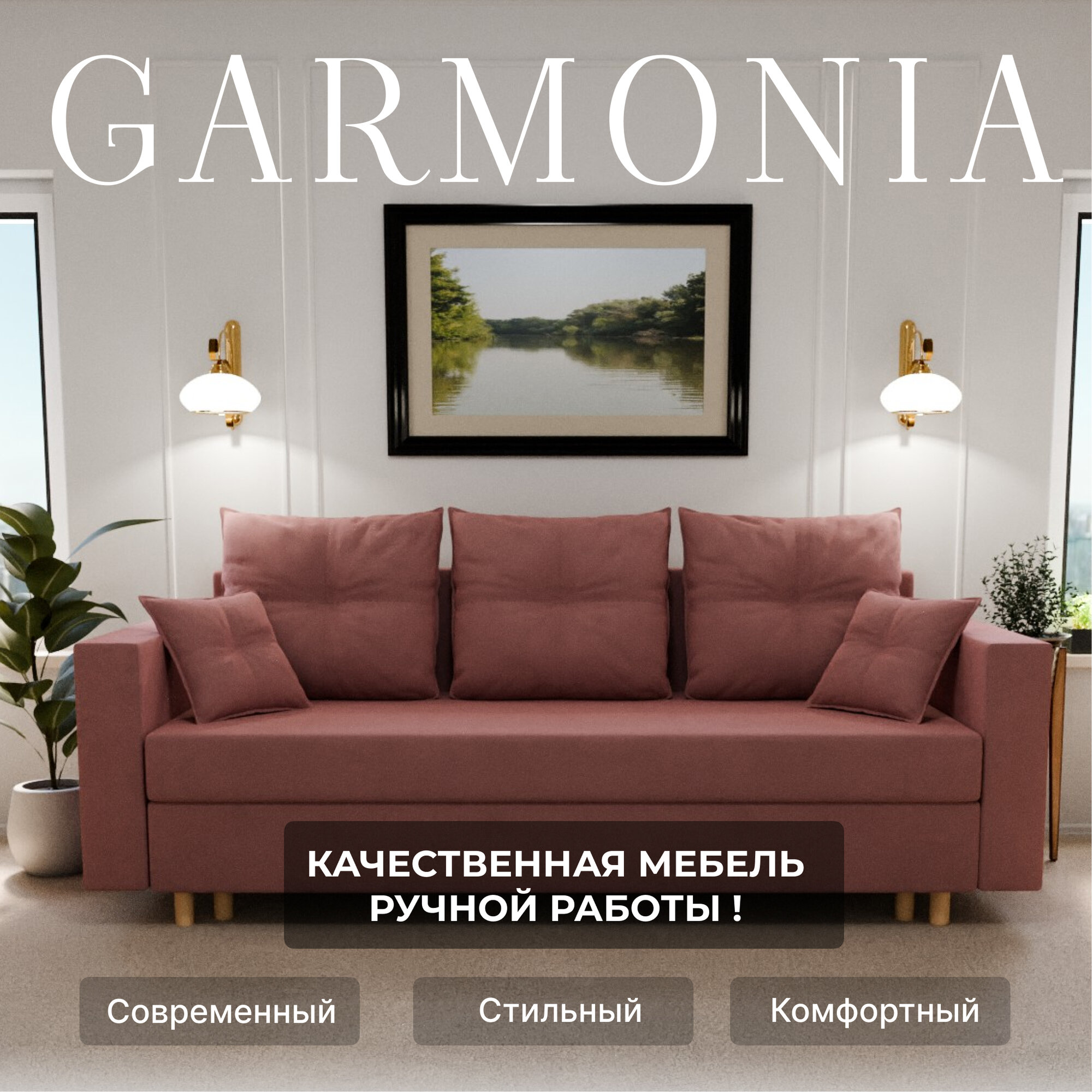 Купить Диван раскладной, "Garmonia", ППУ, Велютта люкс 62 размеры 220х80х100, розовый