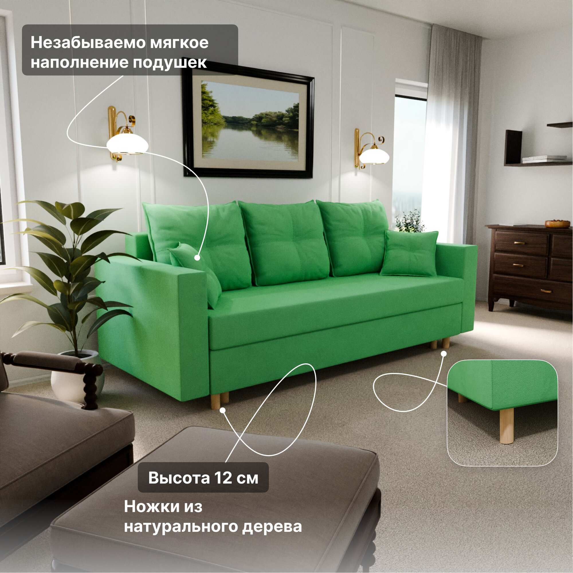 Диван раскладной, "Garmonia", ППУ, Велютта люкс 14 размеры 220х80х100, фисташковый