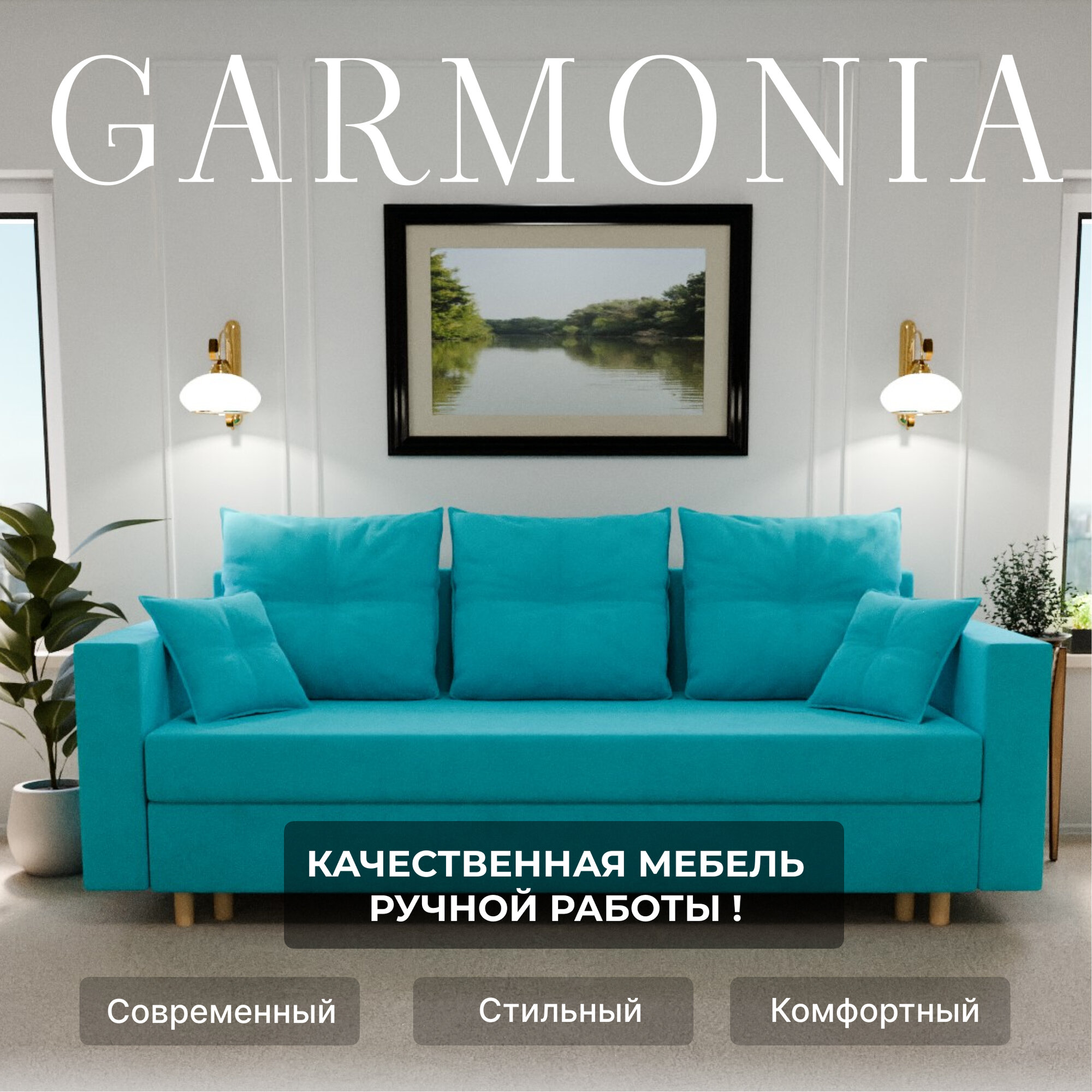 Купить Диван раскладной, "Garmonia", ППУ, Велютта люкс 44 размеры 220х80х100, бирюзовый