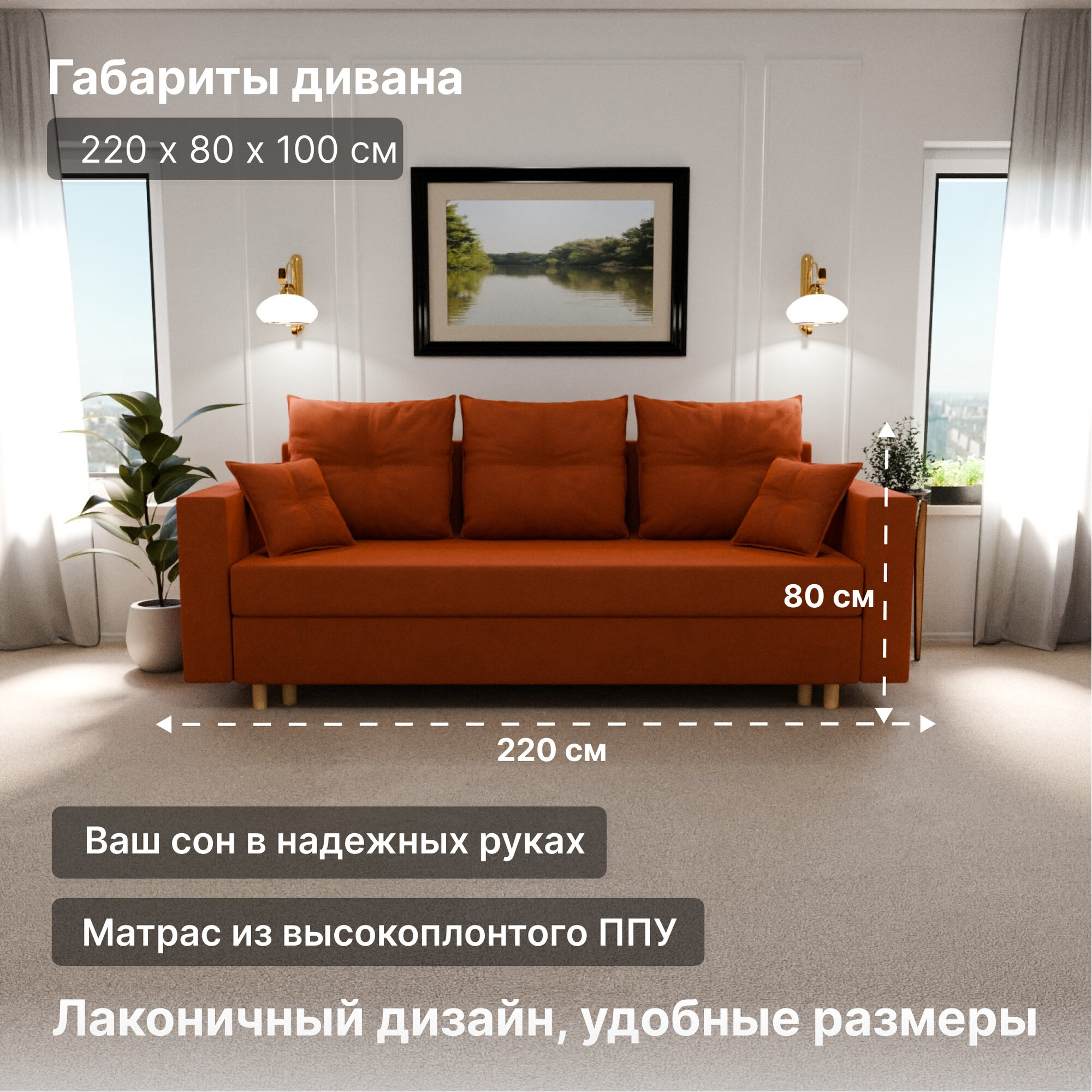 Купить Диван раскладной, "Garmonia", ППУ, Велютта люкс 58 размеры 220х80х100, оранжевый