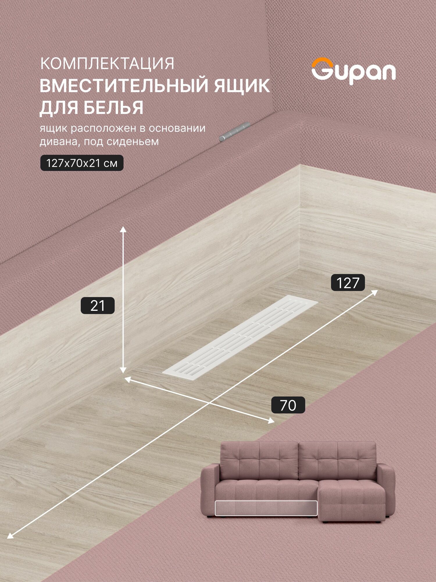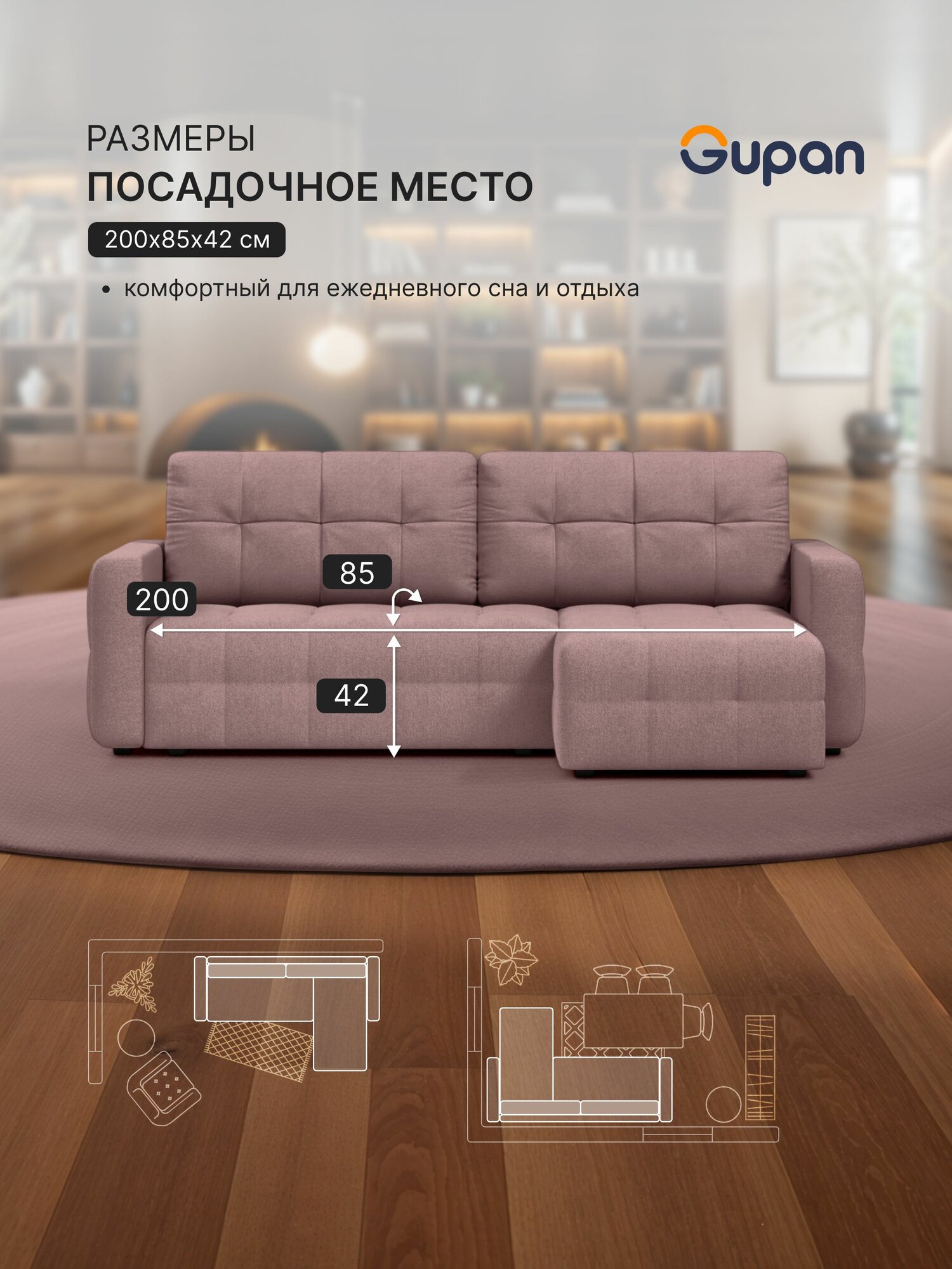 Диван угловой Gupan Данти Велюр Amigo Dimrose, раскладной, механизм еврокнижка, беспружинный, с ящиком для белья