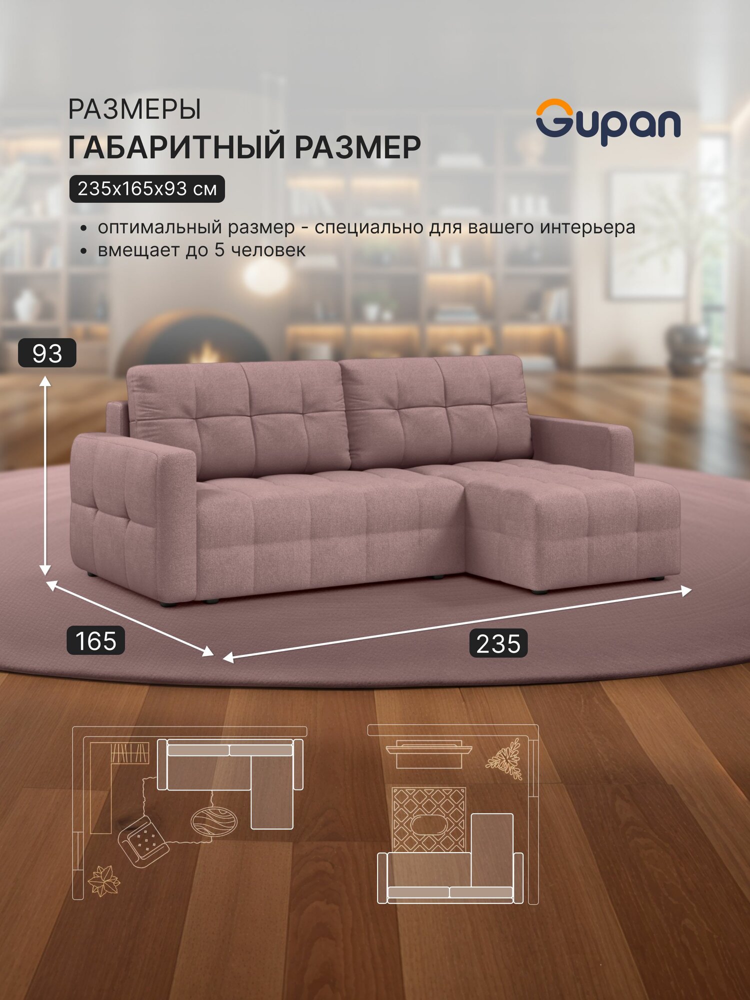 Диван угловой Gupan Данти Велюр Amigo Berry, раскладной, механизм еврокнижка, беспружинный, с ящиком для белья