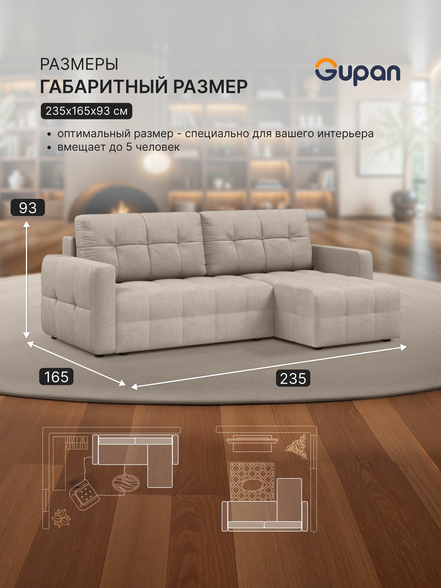 СохранитьДиван угловой Gupan Данти Велюр Amigo Cream, раскладной, механизм еврокнижка, беспружинный, с ящиком для белья интересное: