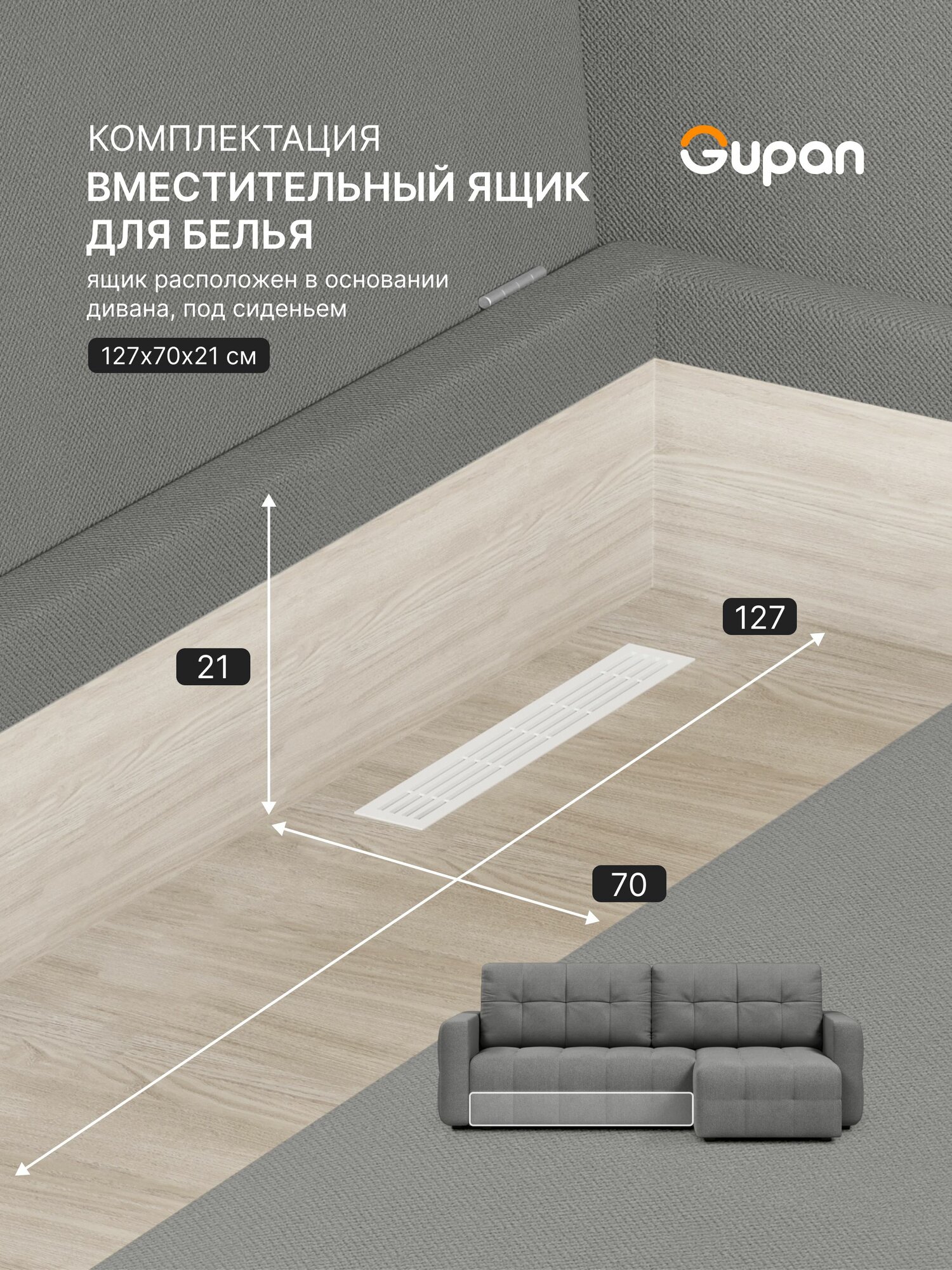 СохранитьДиван угловой Gupan Данти Велюр Amigo Grey, раскладной, механизм еврокнижка, беспружинный, с ящиком для белья интересное: