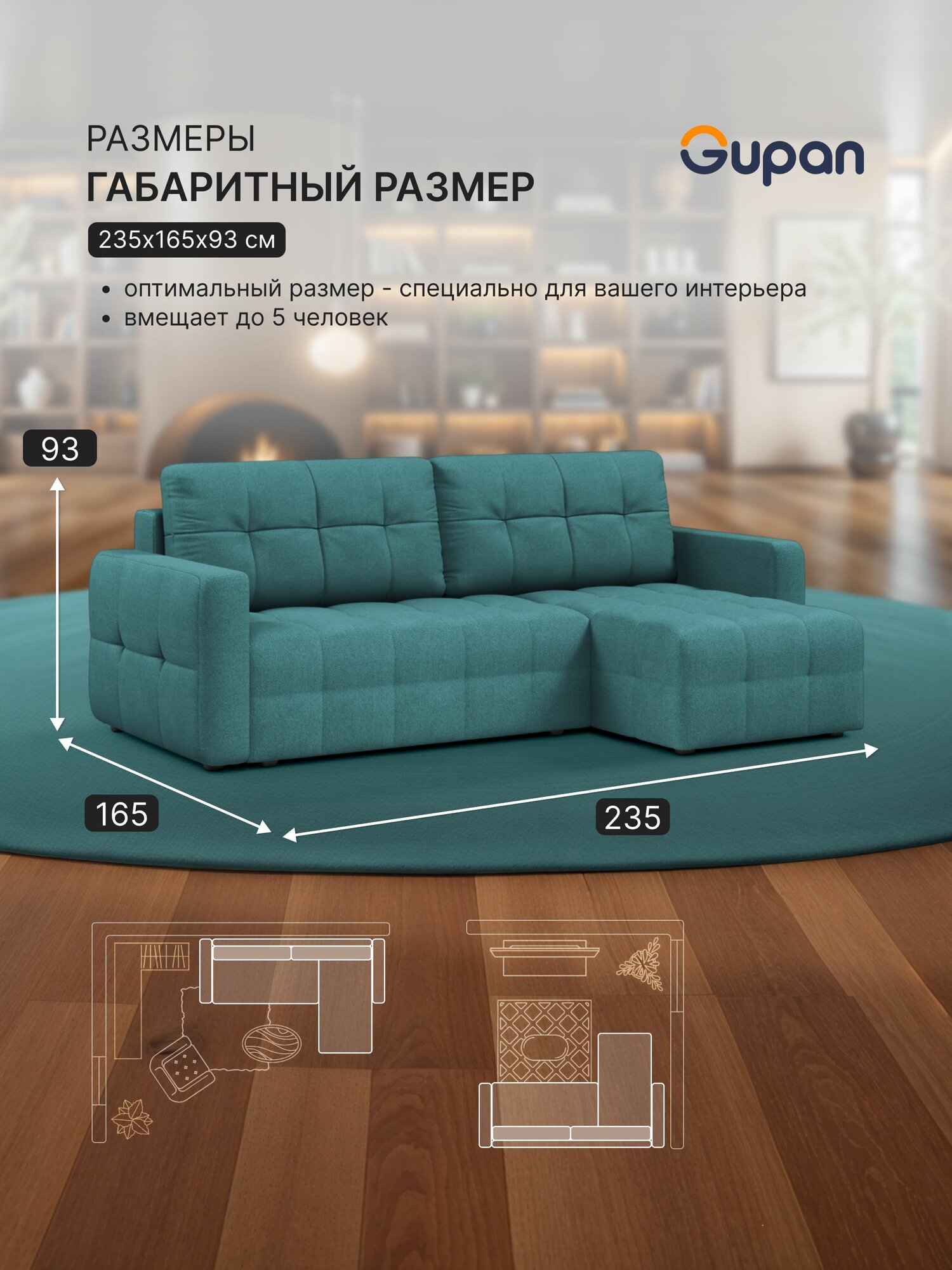 СохранитьДиван угловой Gupan Данти Велюр Amigo Lagoon, раскладной, механизм еврокнижка, беспружинный, с ящиком для белья интересное: