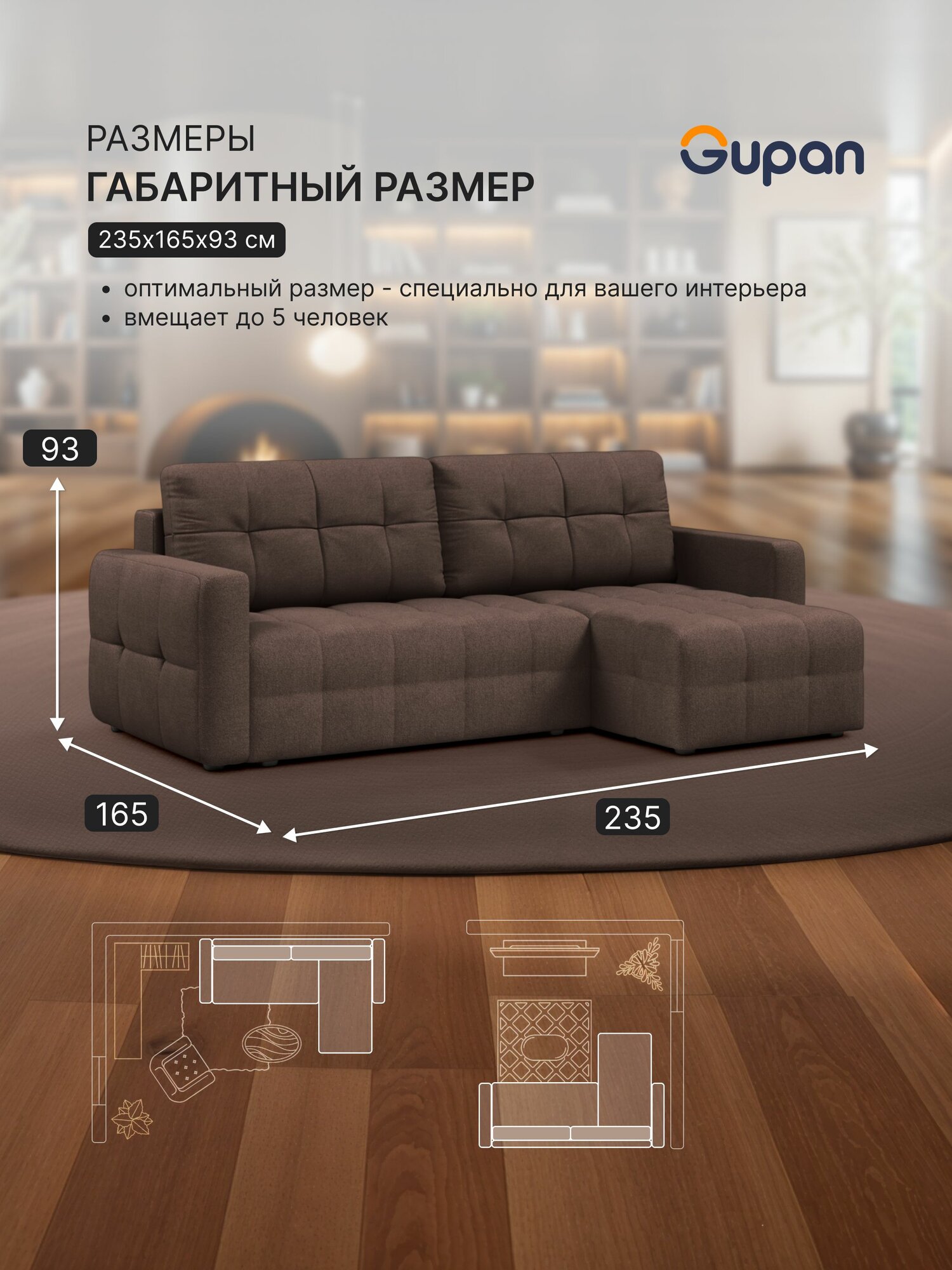 СохранитьДиван угловой Gupan Данти Велюр Amigo Coffee, раскладной, механизм еврокнижка, беспружинный, с ящиком для белья интересное: