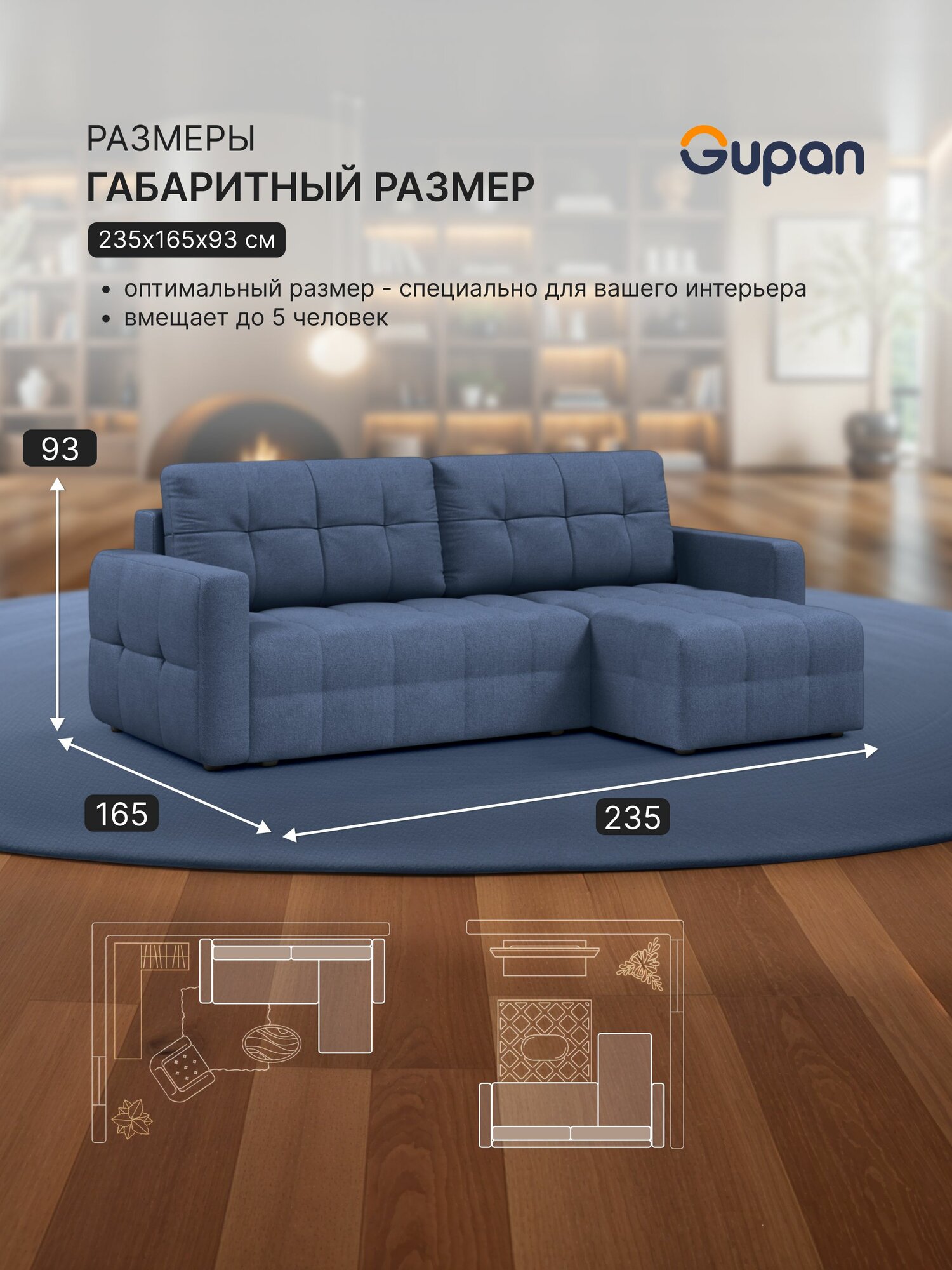 СохранитьДиван угловой Gupan Данти Велюр Amigo Navy, раскладной, механизм еврокнижка, беспружинный, с ящиком для белья интересное: