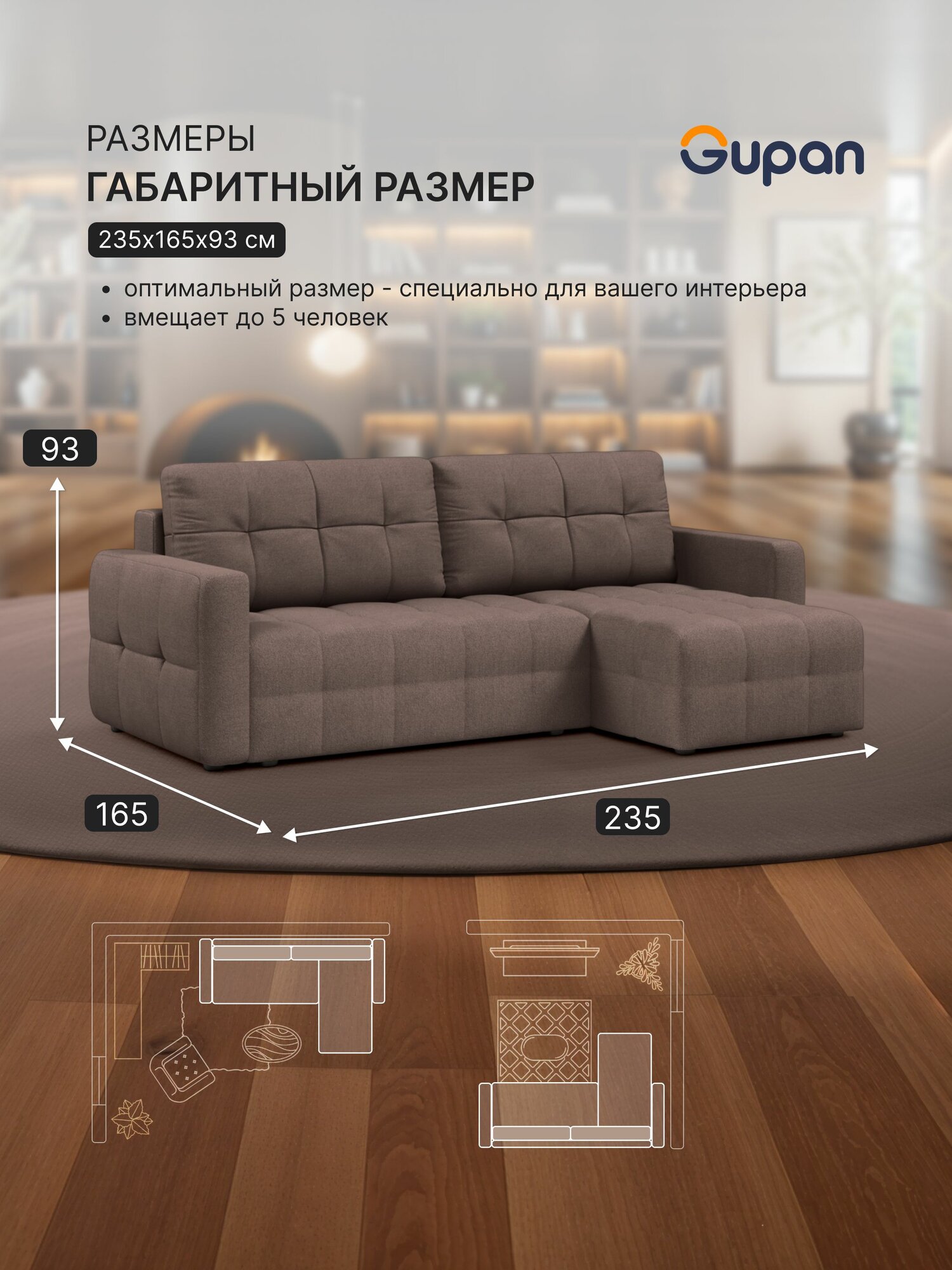 СохранитьДиван угловой Gupan Данти Велюр Amigo Chocolate, раскладной, механизм еврокнижка, беспружинный, с ящиком для белья интересное: