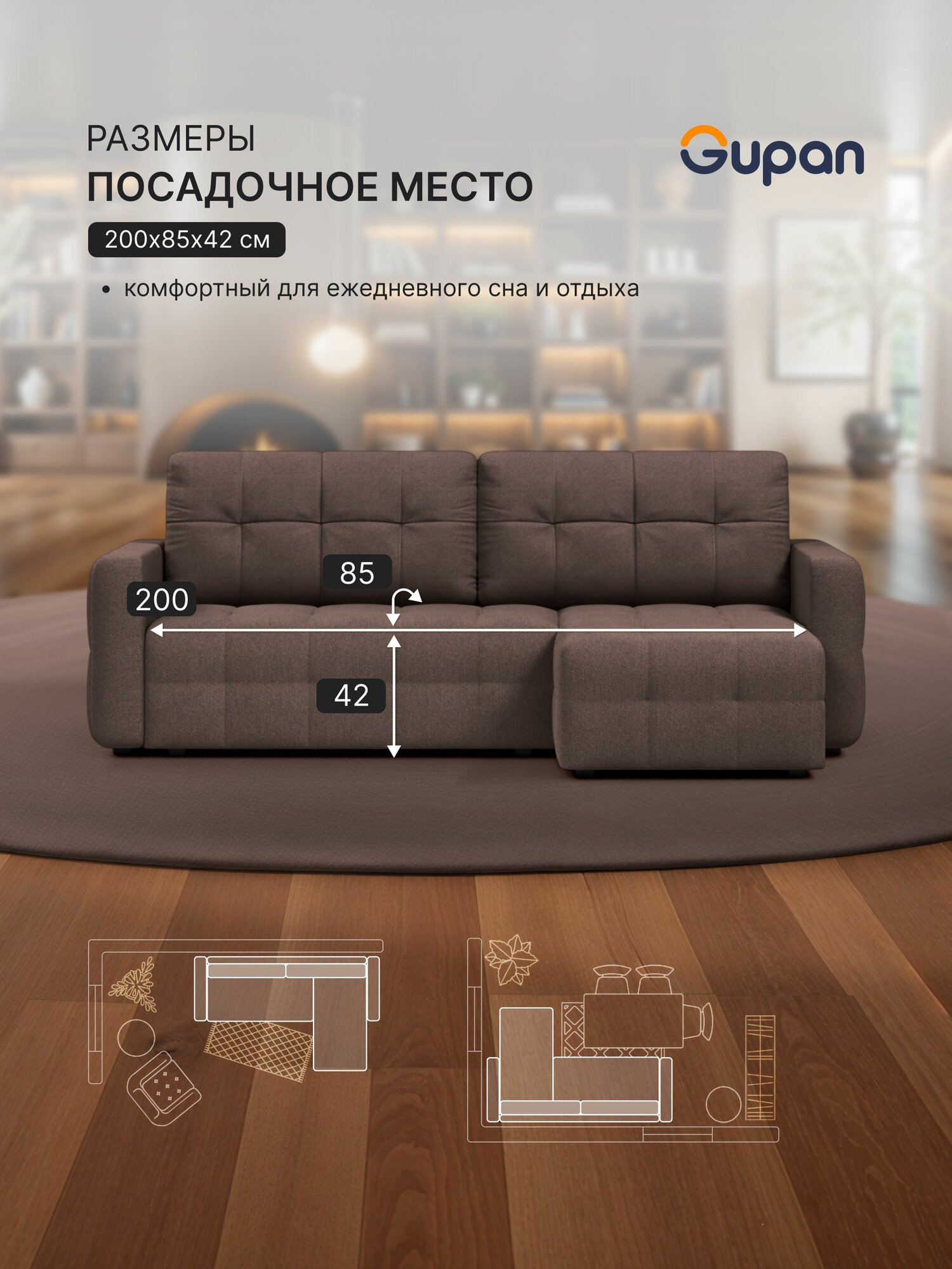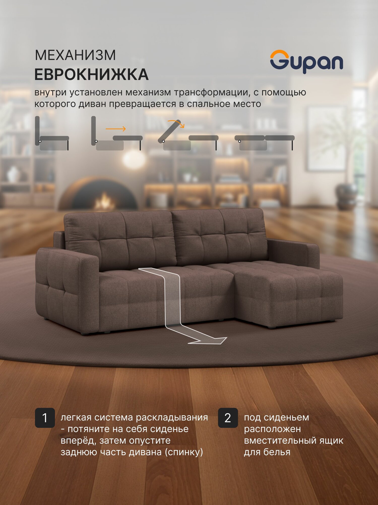 СохранитьДиван угловой Gupan Данти Велюр Amigo Brown, раскладной, механизм еврокнижка, беспружинный, с ящиком для белья интересное: