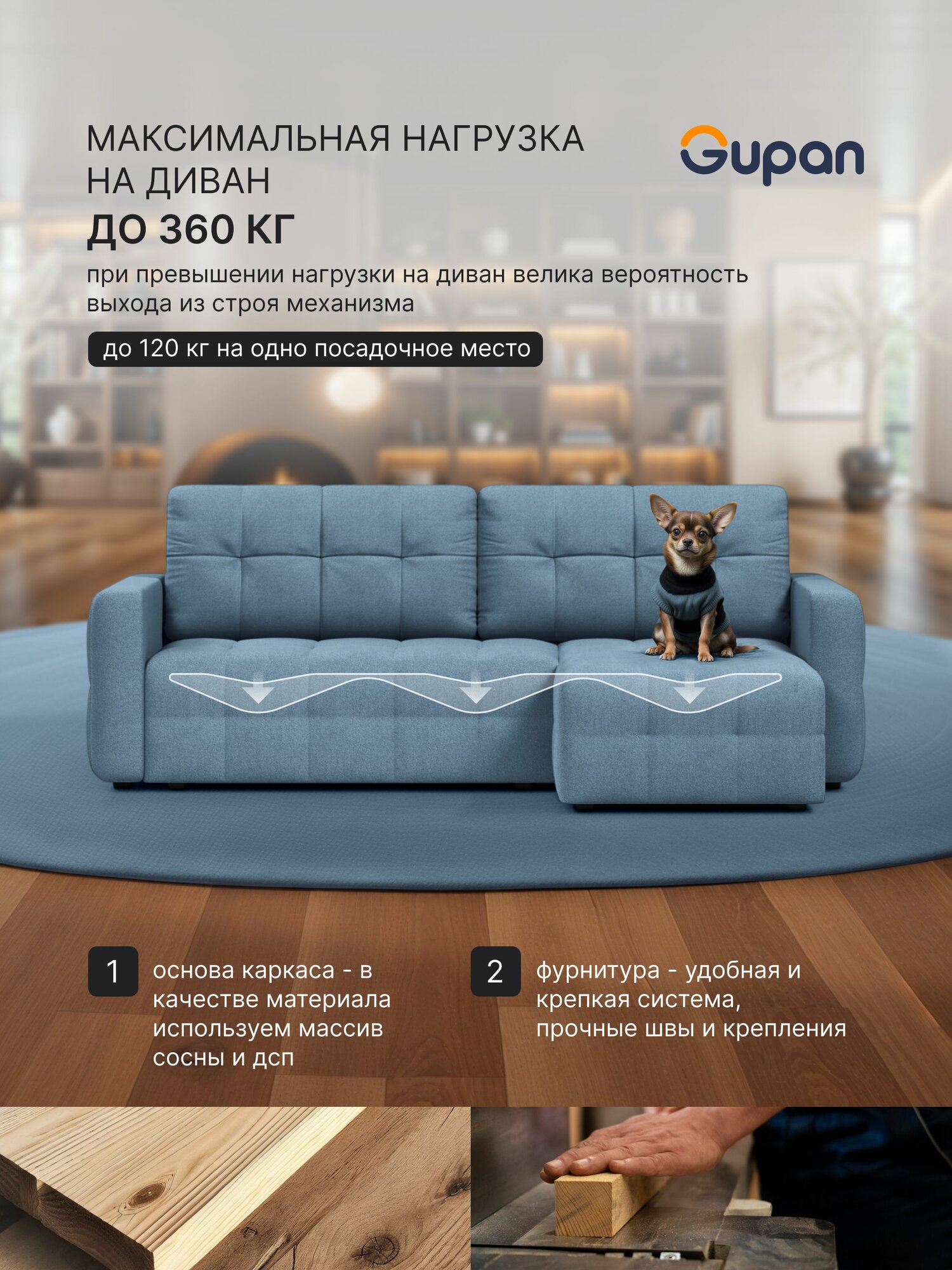 СохранитьДиван угловой Gupan Данти Велюр Amigo Blue, раскладной, механизм еврокнижка, беспружинный, с ящиком для белья интересное: