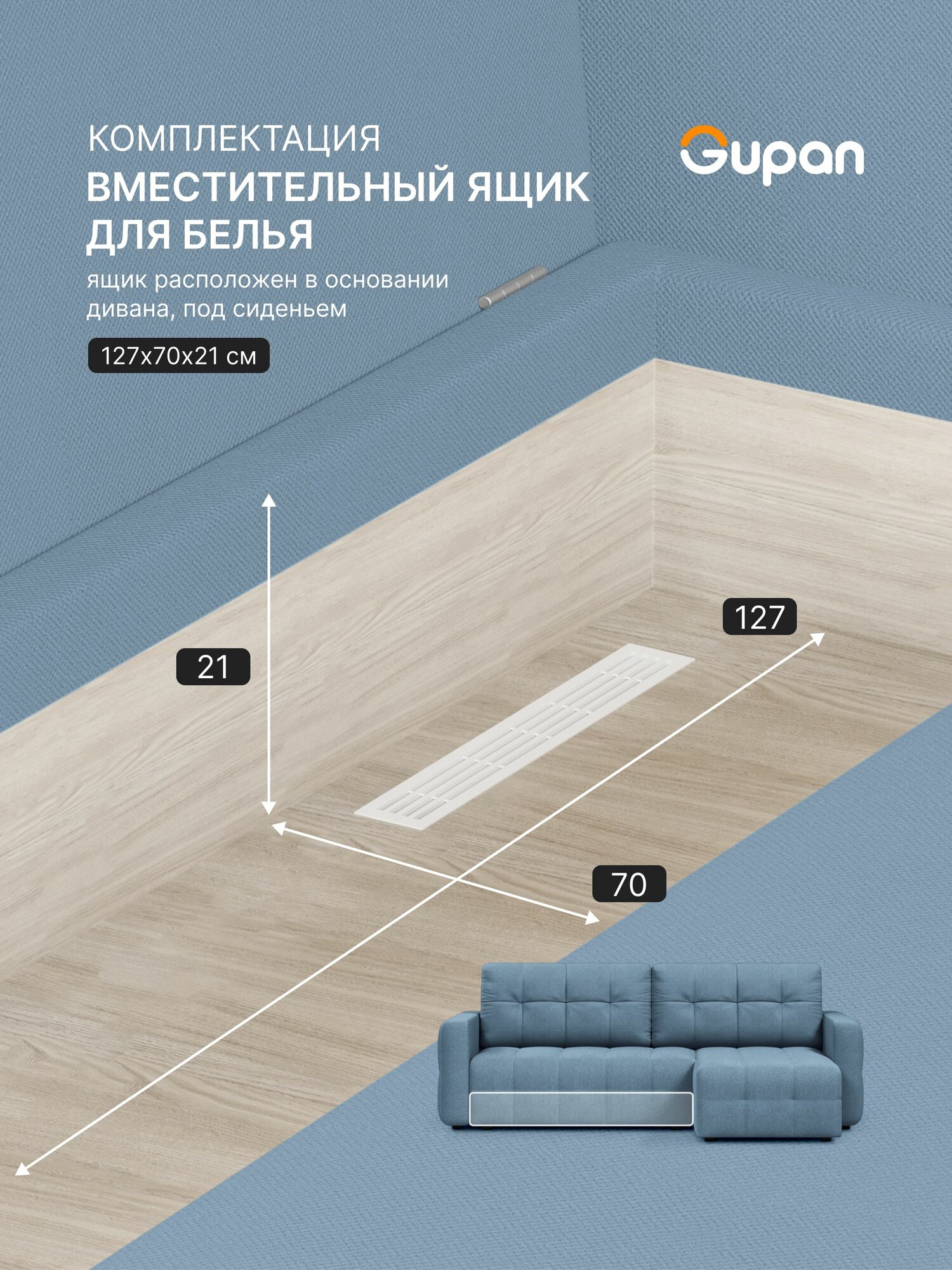 Купить Диван угловой Gupan Данти Велюр Amigo Blue, раскладной, механизм еврокнижка, беспружинный, с ящиком для белья