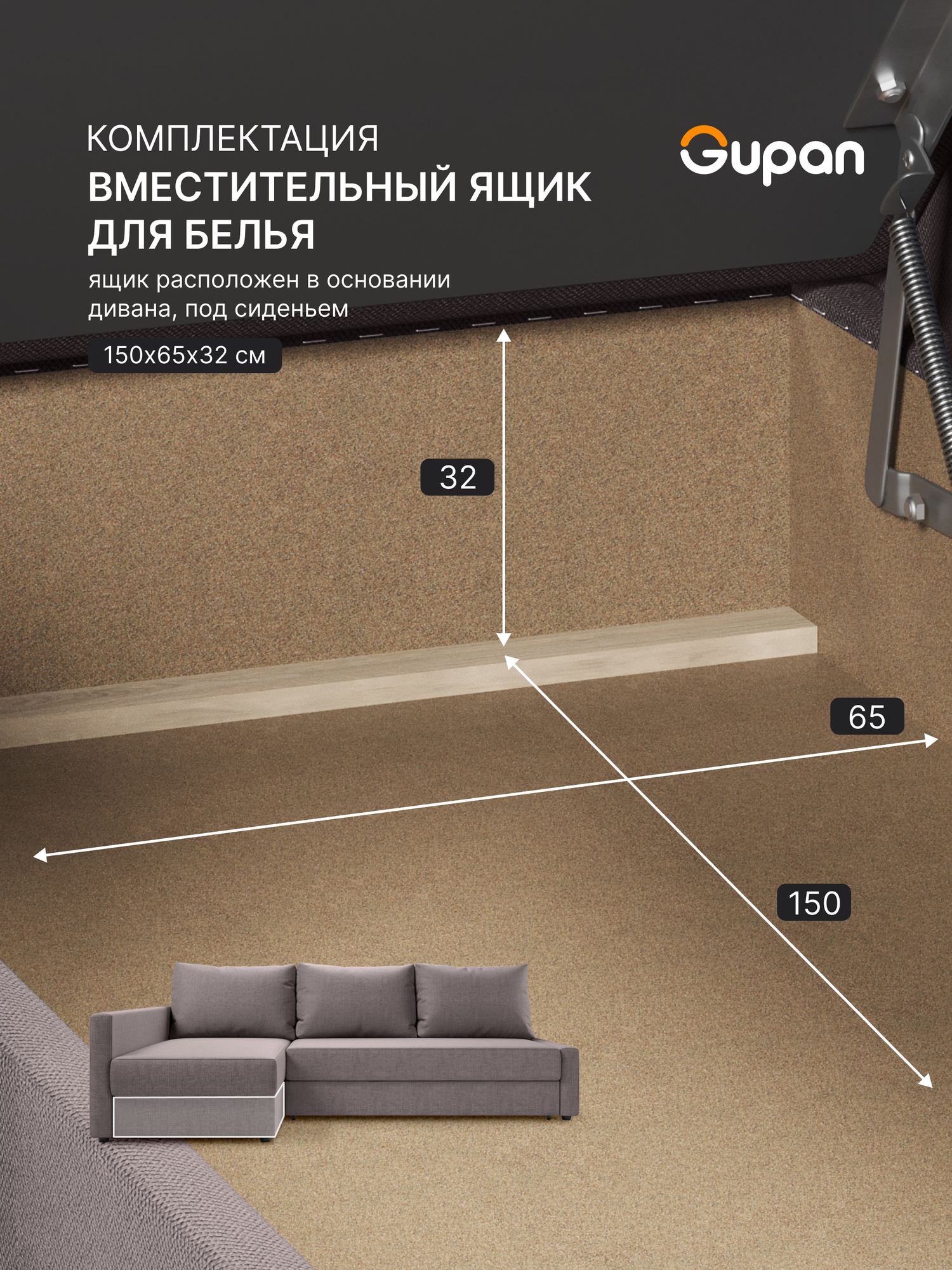 Купить Диван угловой Gupan Фрисби Рогожка Savana Vision, раскладной, механизм дельфин, беспружинный, с ящиком для белья