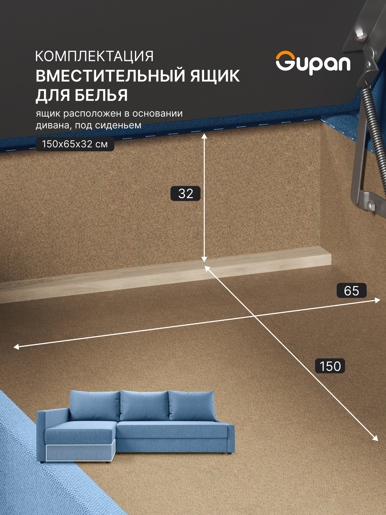 Купить Диван угловой Gupan Фрисби Рогожка Savana Blue, раскладной, механизм дельфин, беспружинный, с ящиком для белья